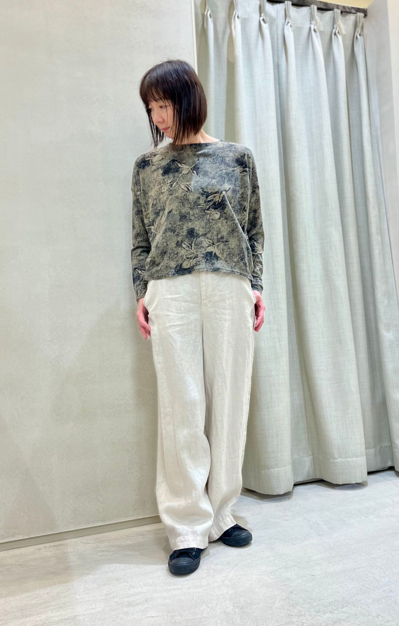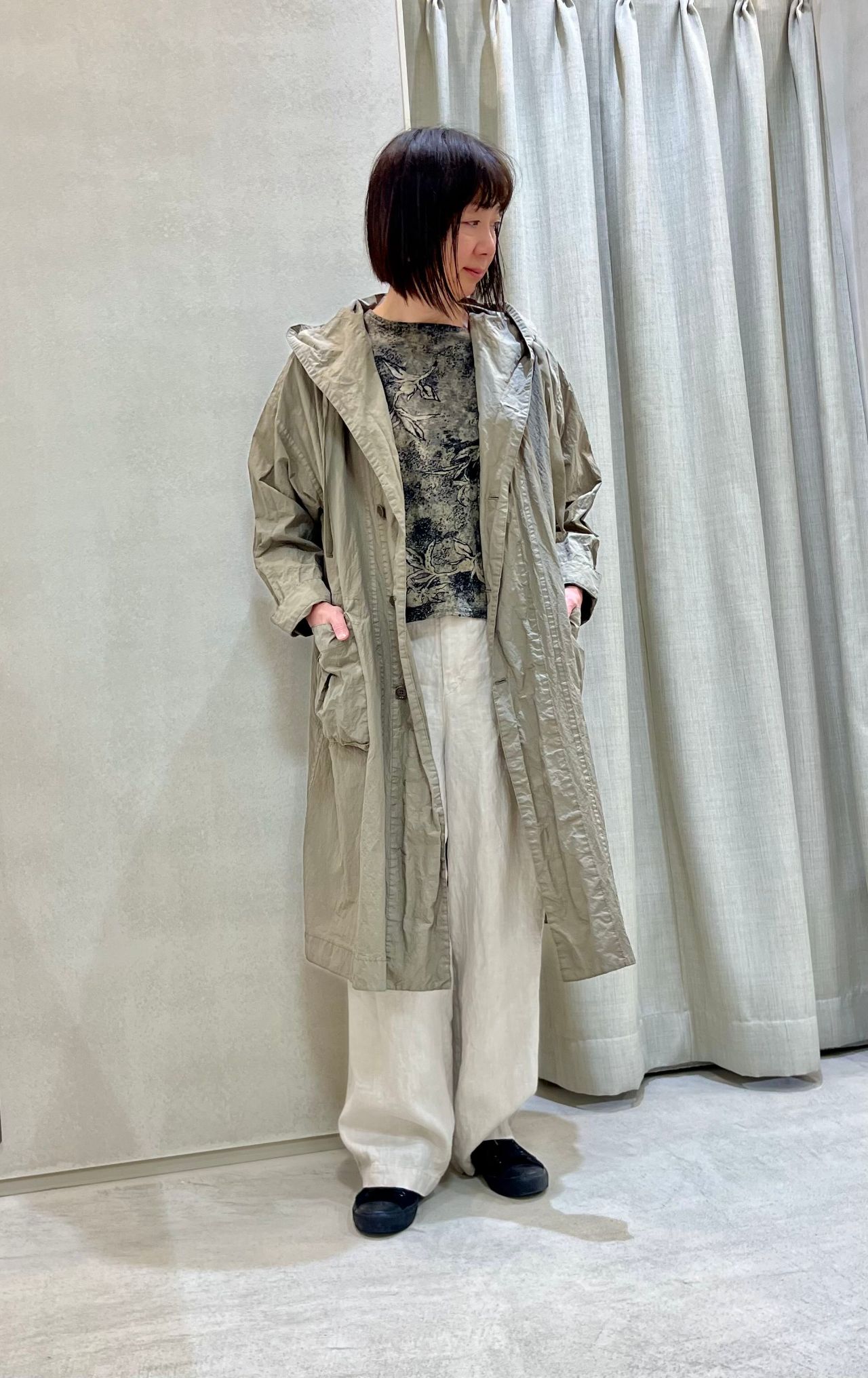 ゆったりしていますがスッキリみえるシルエットです。
