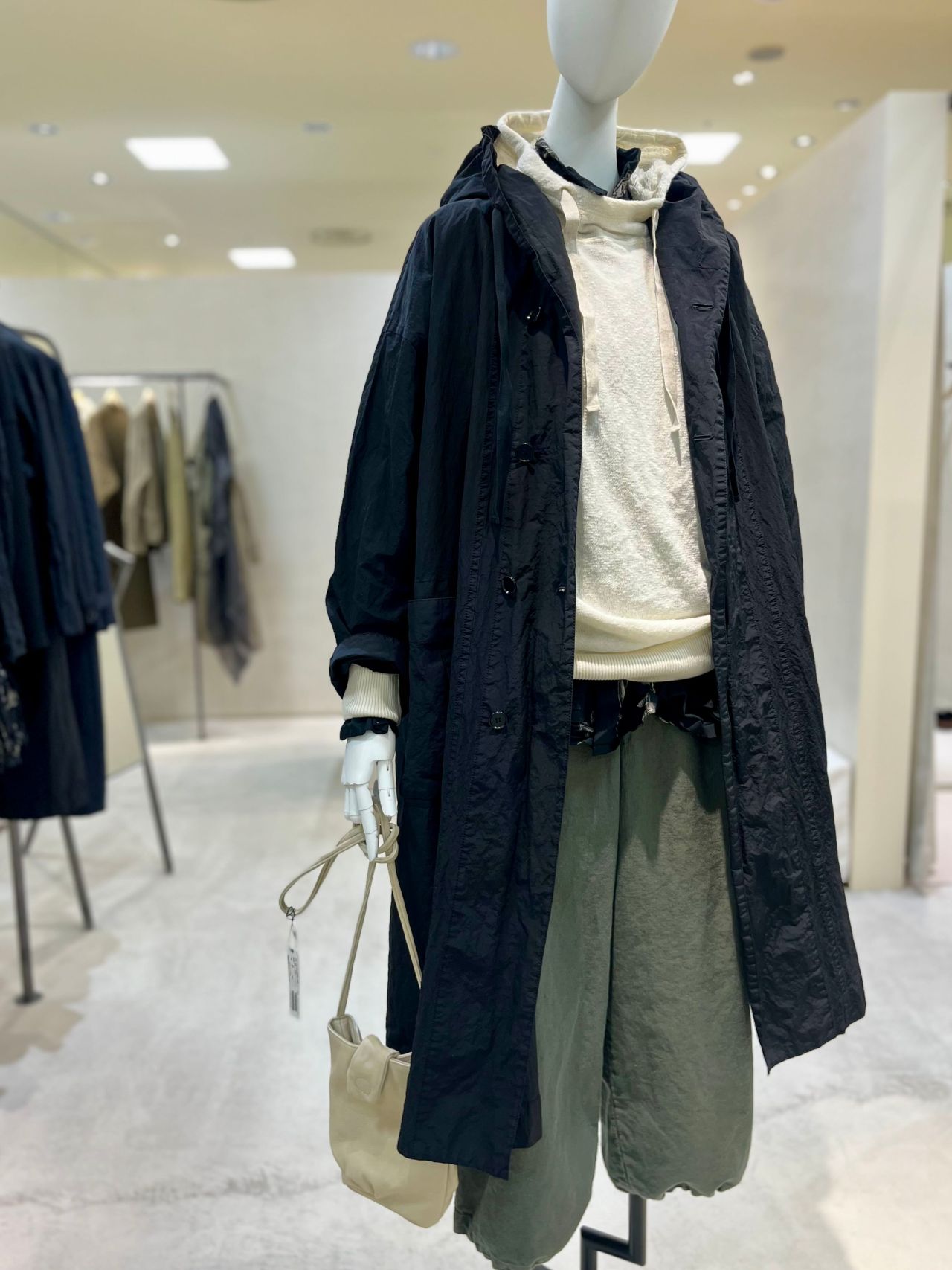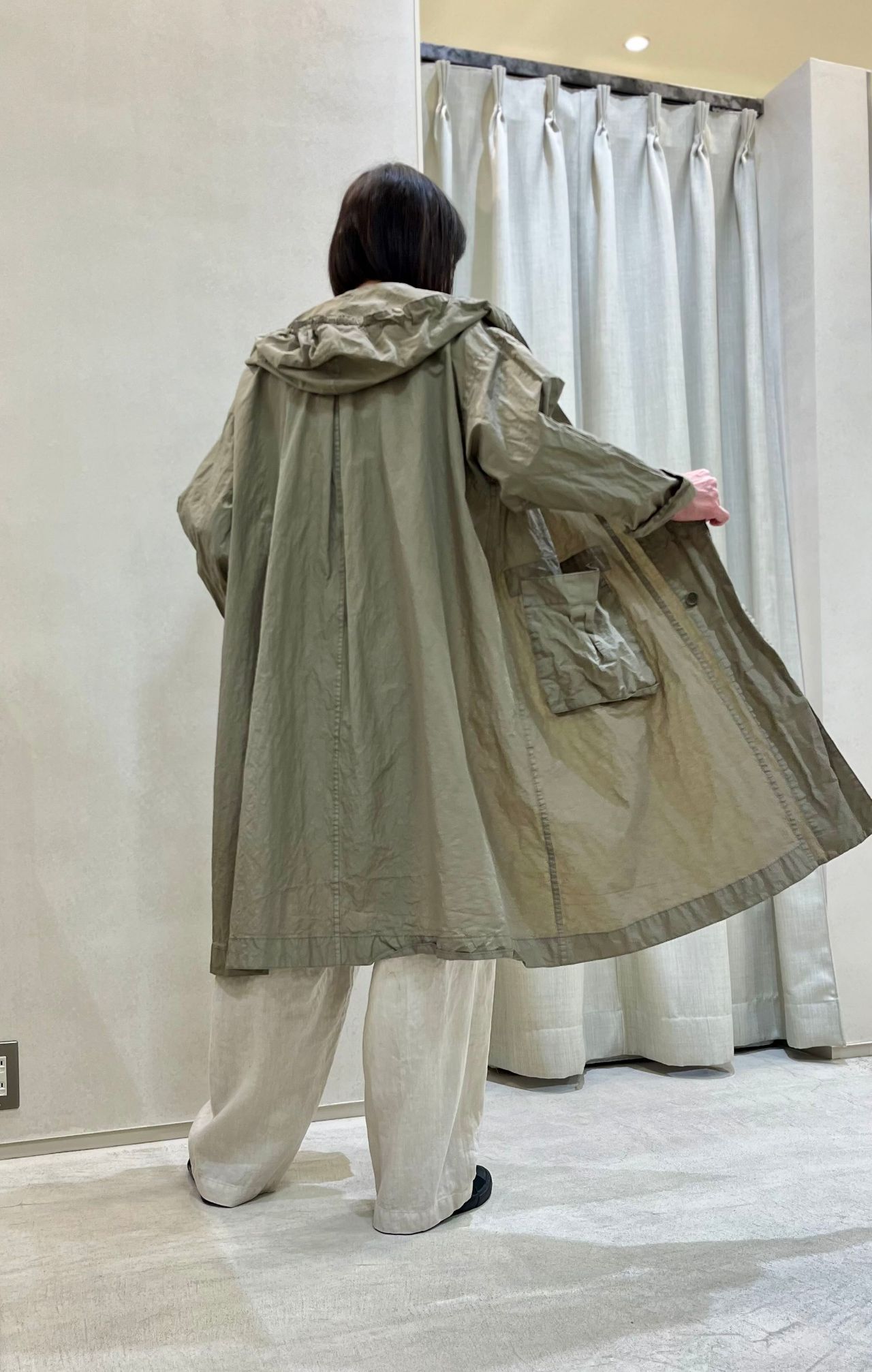 1つ釦+ファスナーで落ち感のあるシルエットで、大人っぽくリラックス感があります。