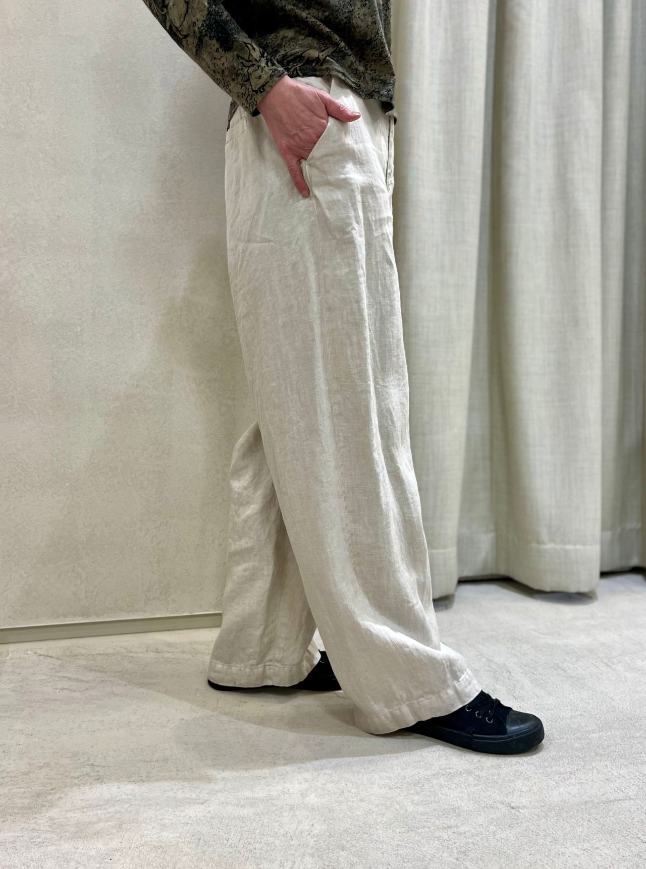 フルレングスのワイドパンツです。