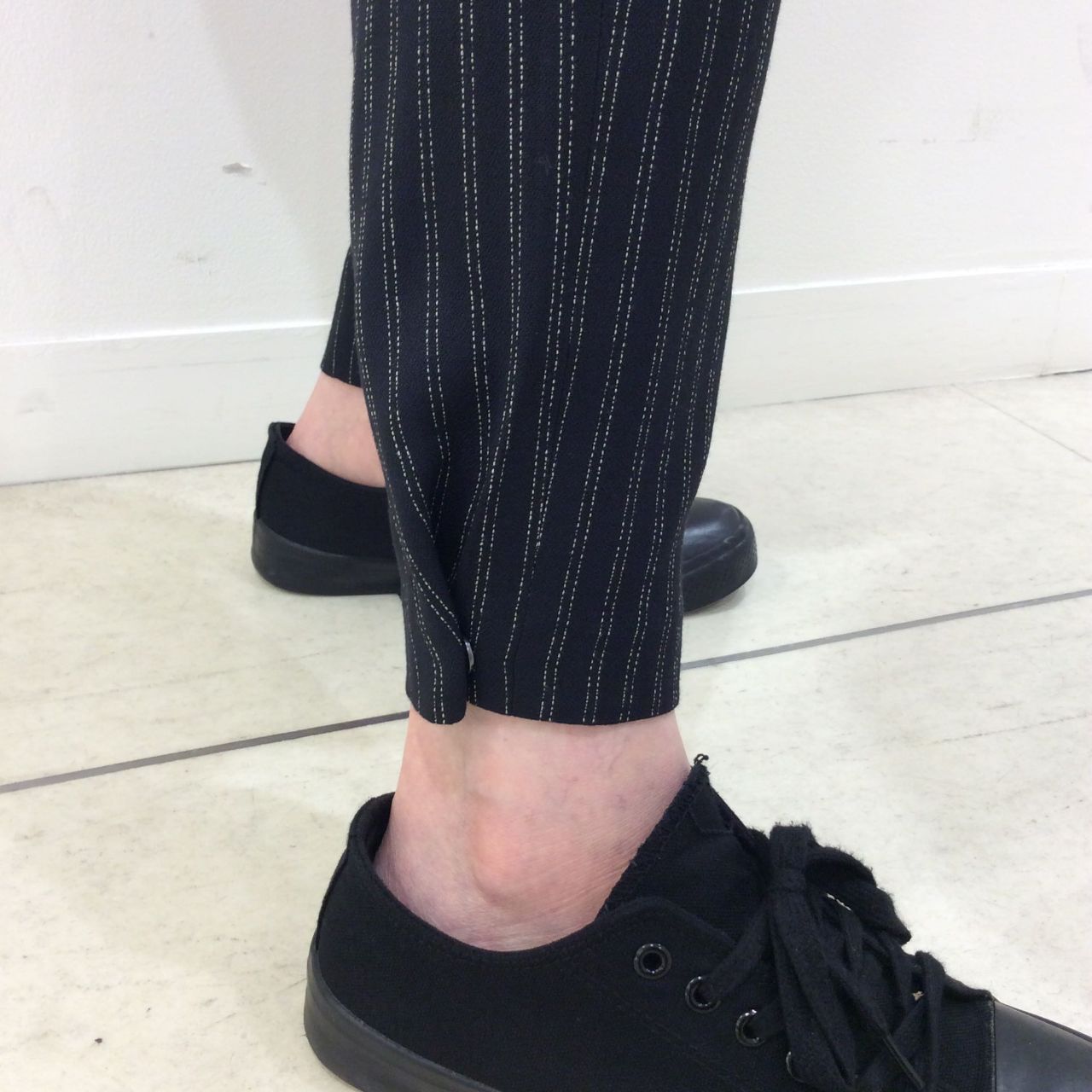 細身シルエットのイージーパンツです。