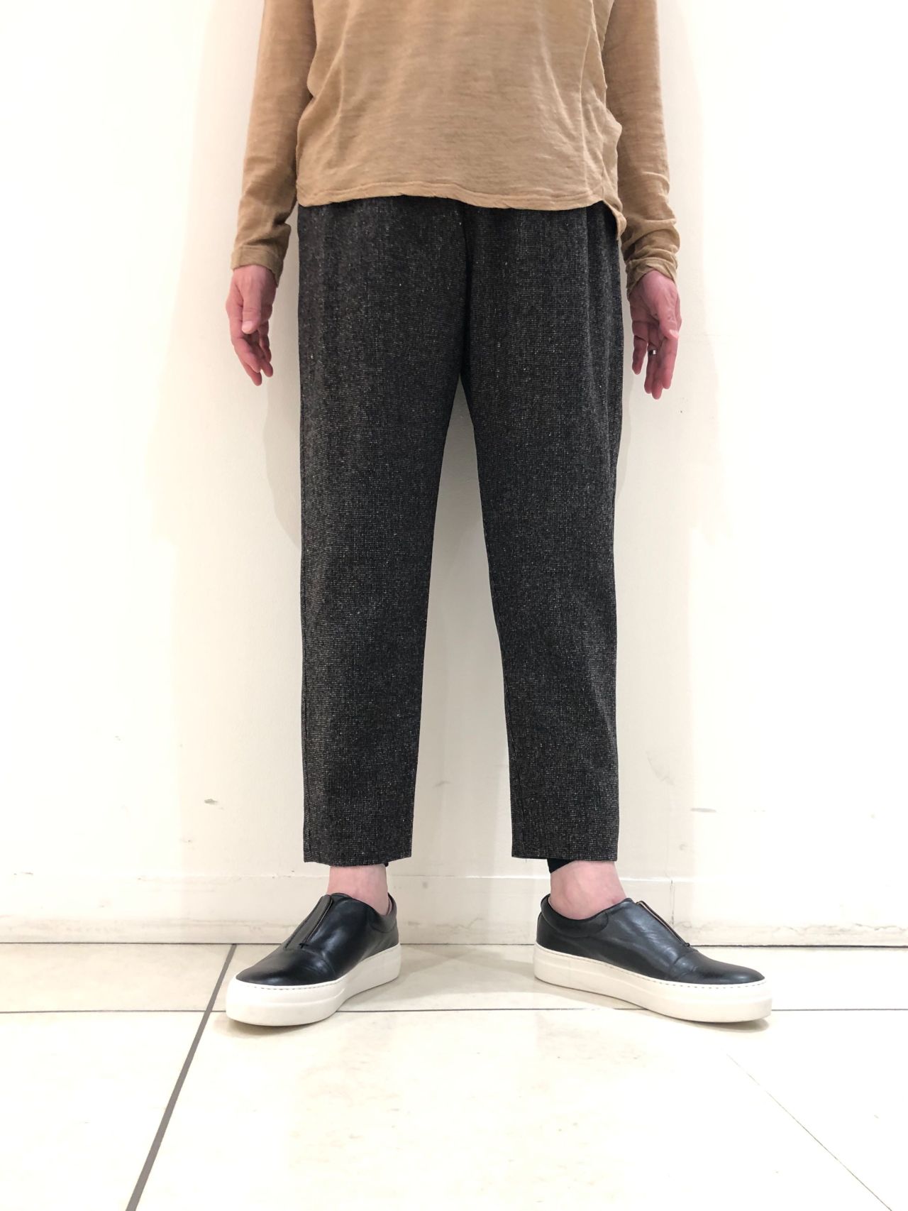 ウールピンヘッド素材の裏地付きイージーパンツです。