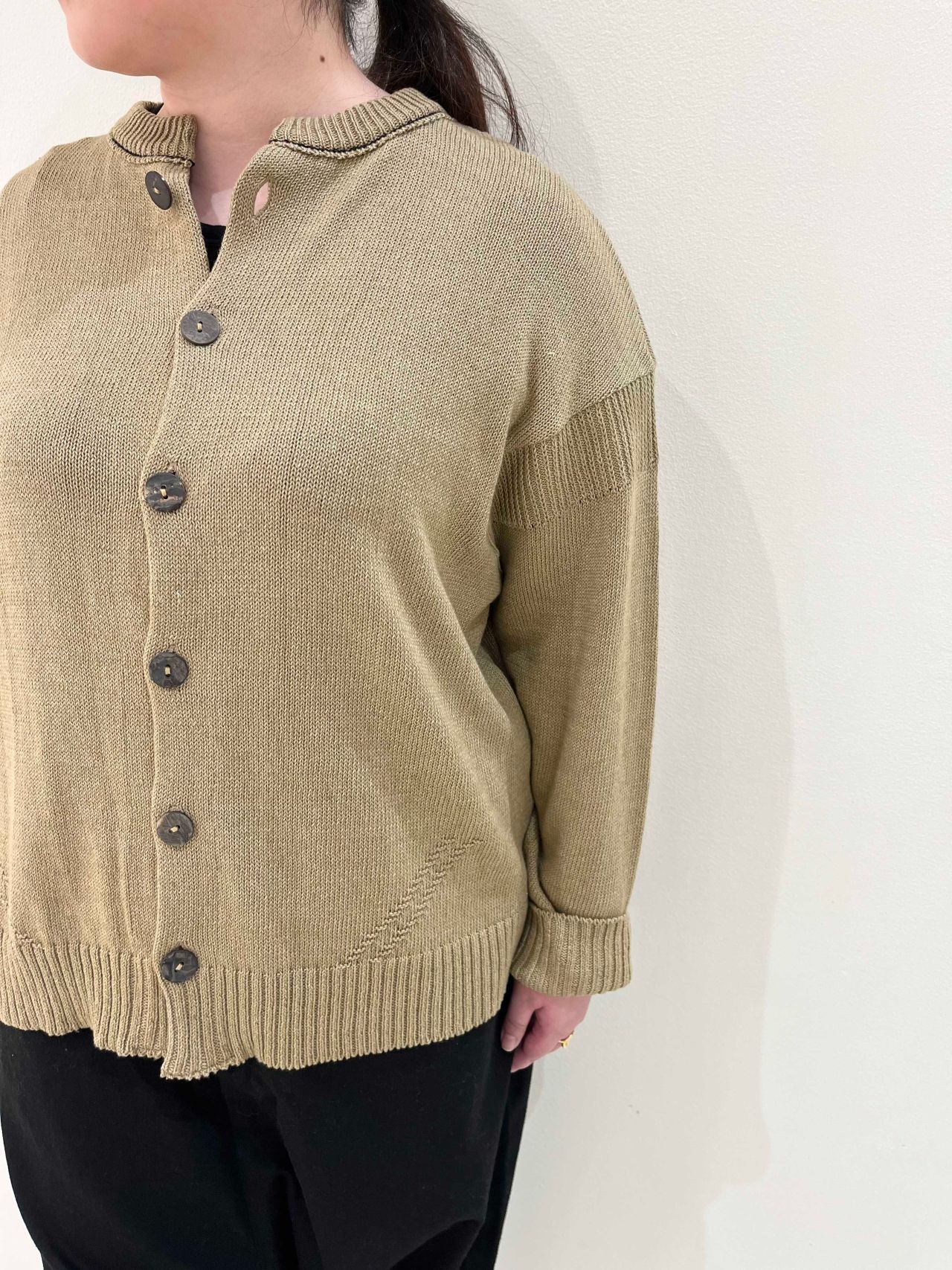 デニムライクコットンヤーンクルーネックカーディガン