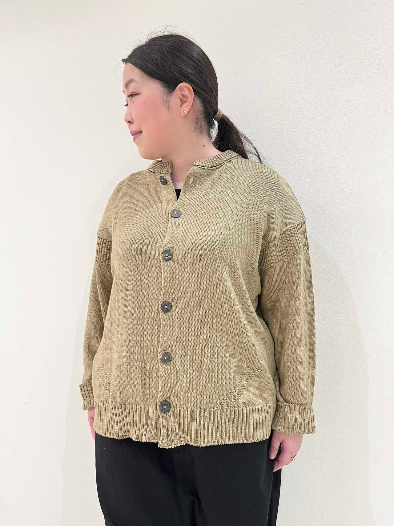 羽毛の綺麗な綿糸を使用し、カジュアル過ぎない素材感。