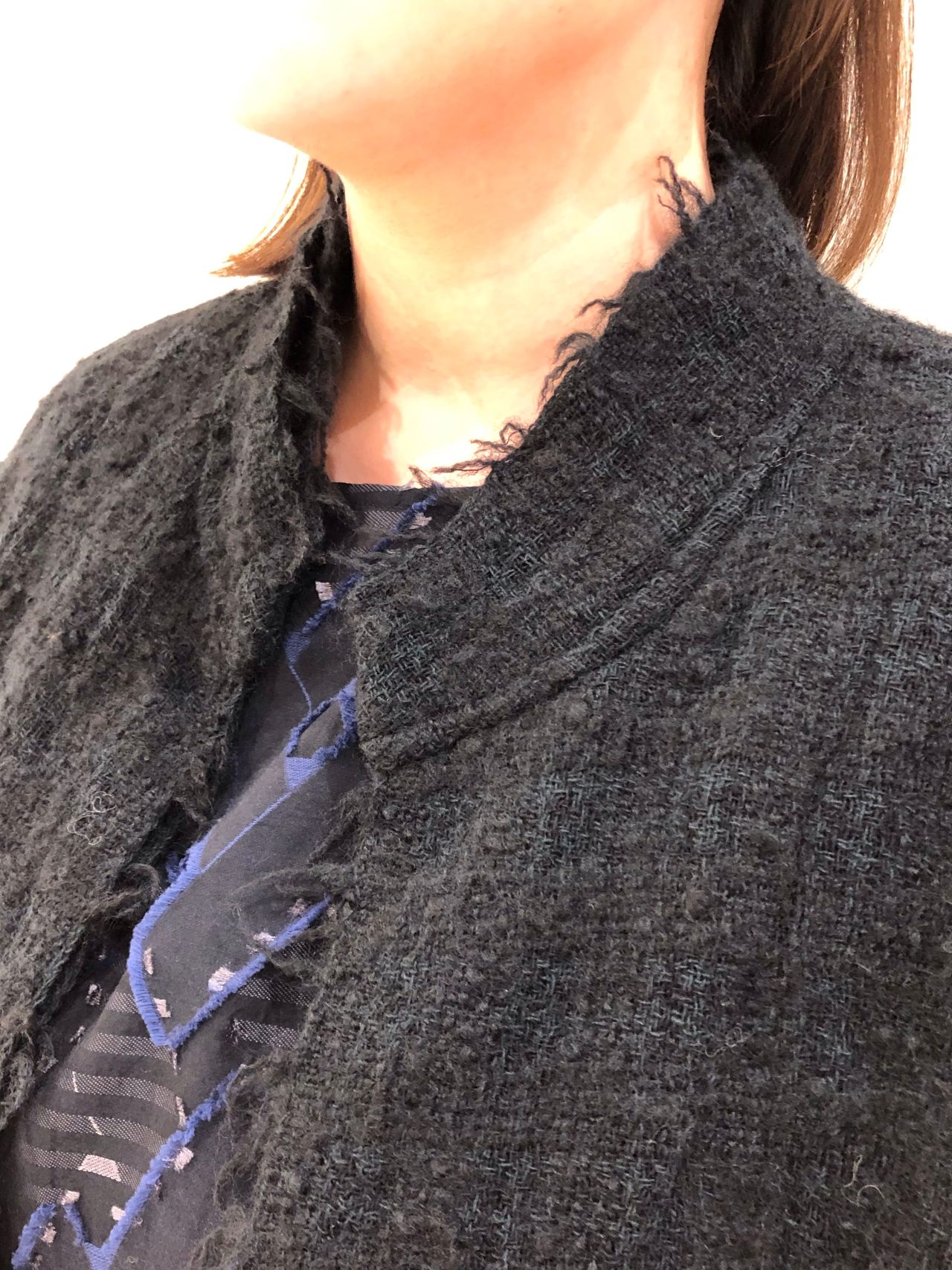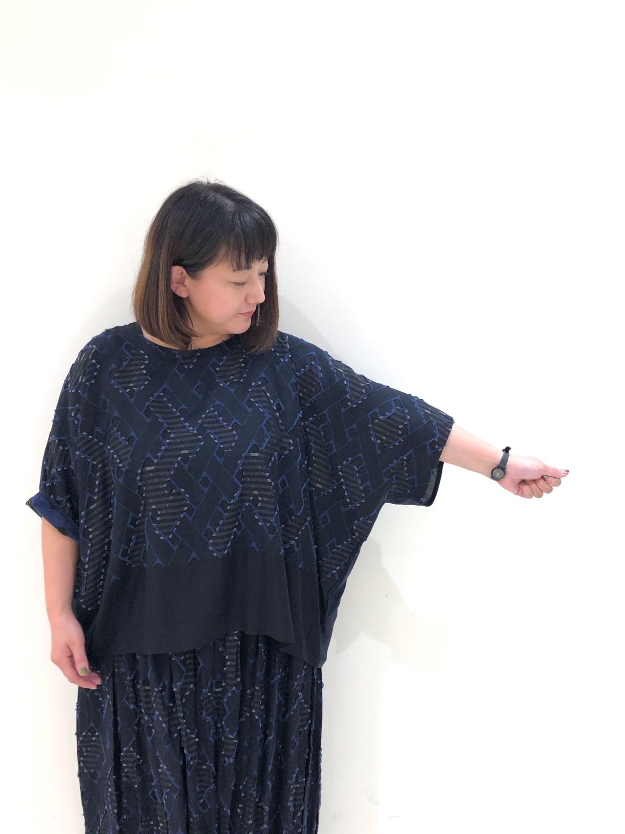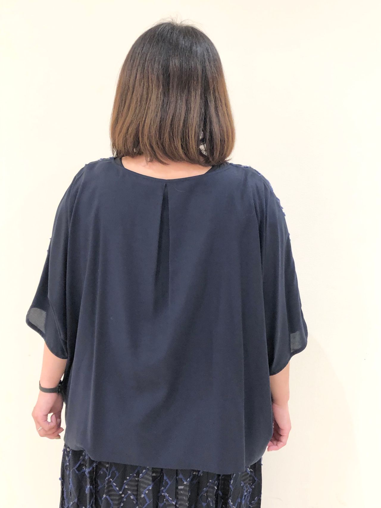 七分袖ですが、中に長袖やタートルを合わせたり、カーディガンを羽織ったりと、シーズン通して着て頂けます。