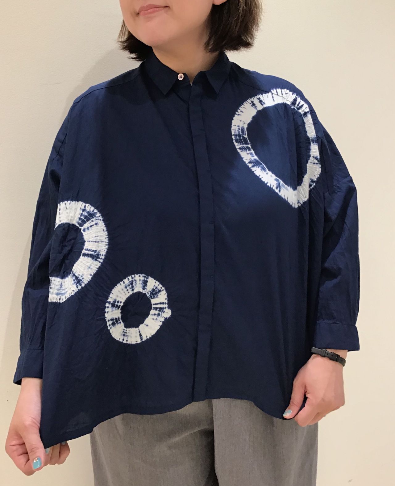 職人がひとつひとつ手作業で柄を施した有松絞りのブラウスです。