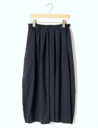 脇がコクーンシルエットになったスカートは、楽な履き心地のウエストゴム仕様。