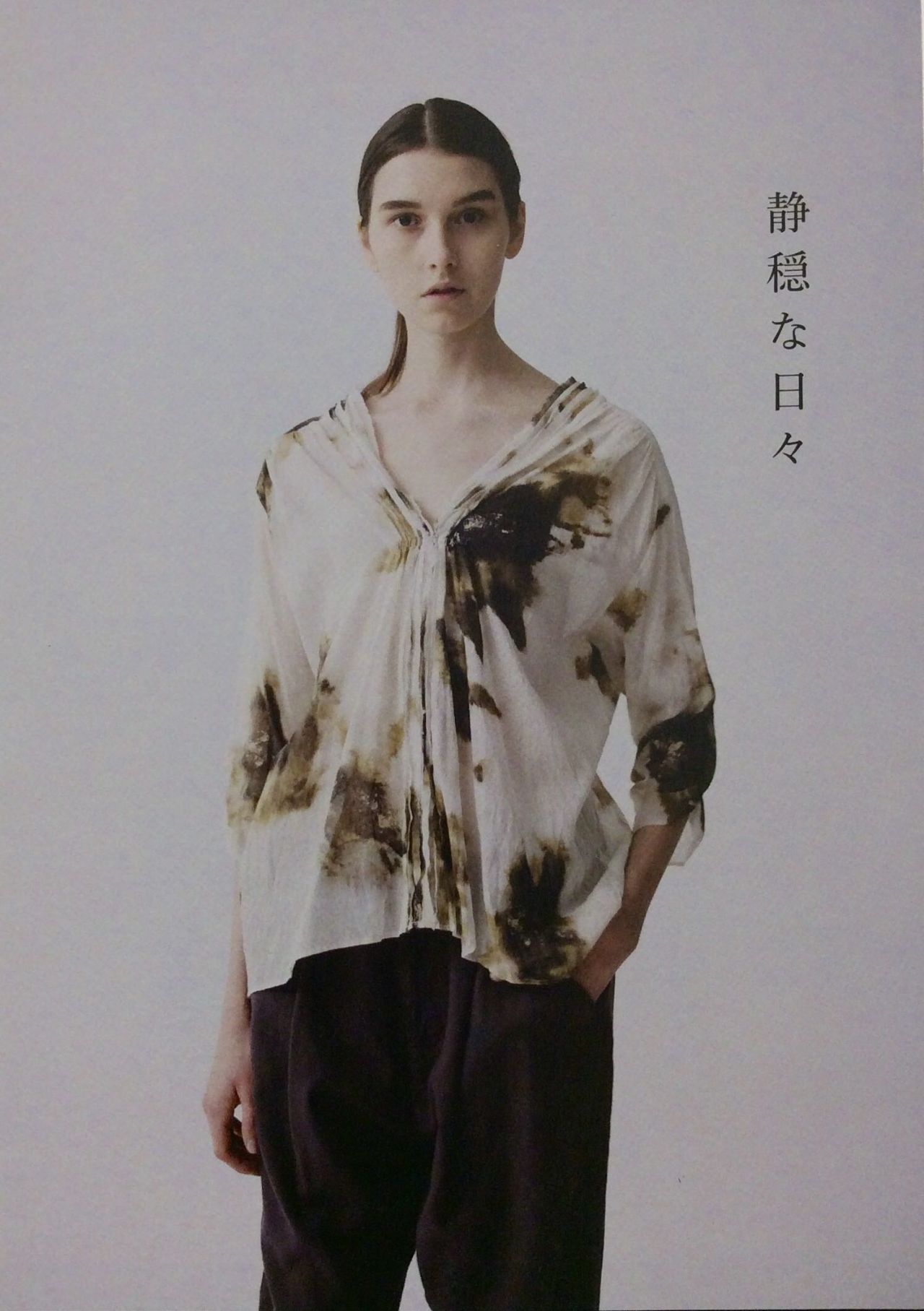 テンセルの落ち感と綿麻の粗野感がMIXされた素材に製品染を施し、ナチュラルな風合いを出しています。