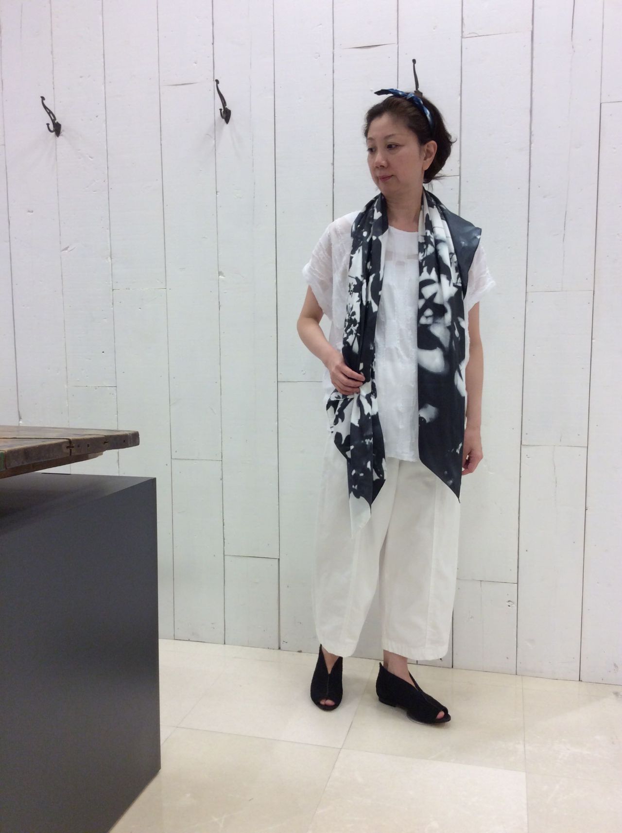 ブランドスタートの頃よりpas de calaisと親交の深い写真家Mote Sinabel Aoki氏が、デザイナーと初めてパ・ド・カレ地方を訪れた際に撮影した写真を使用。パ・ド・カレ地方の素朴で広大な土地を、モノトーンのインクジェットでプリントした。