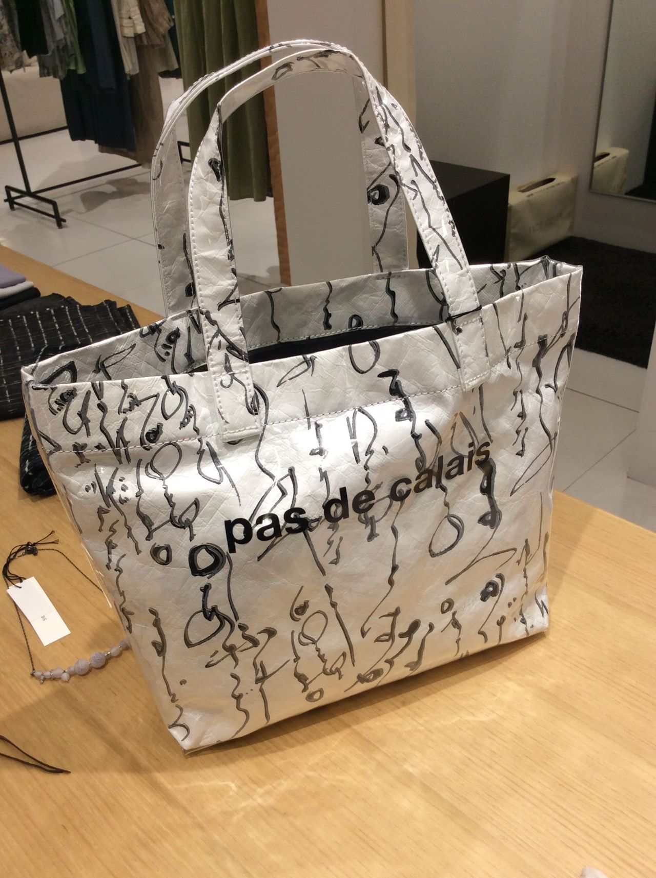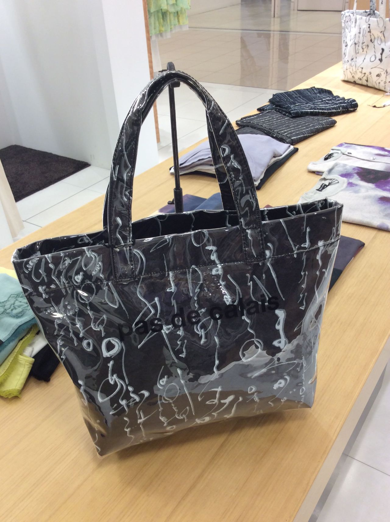 透明のビニールBAGの中に和紙のような紙に万葉集の文字がサラサラと書いてあるプリントです。