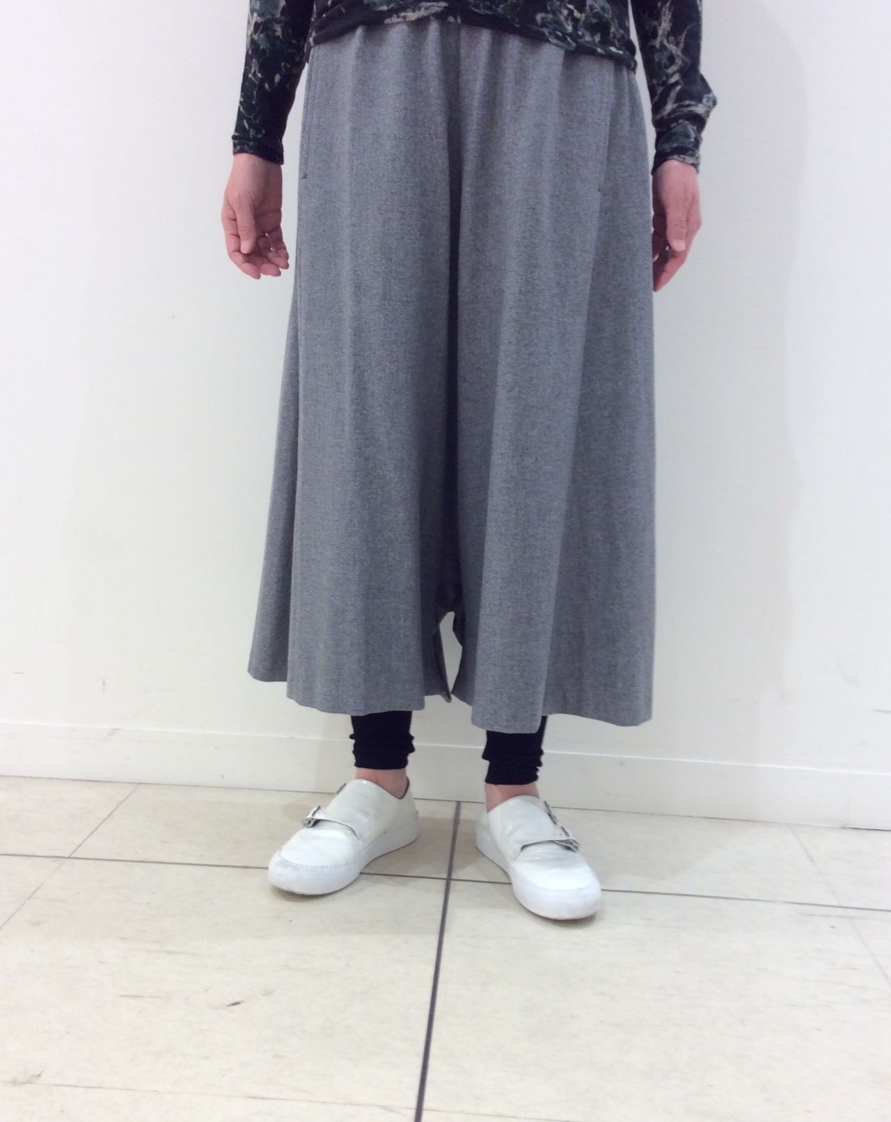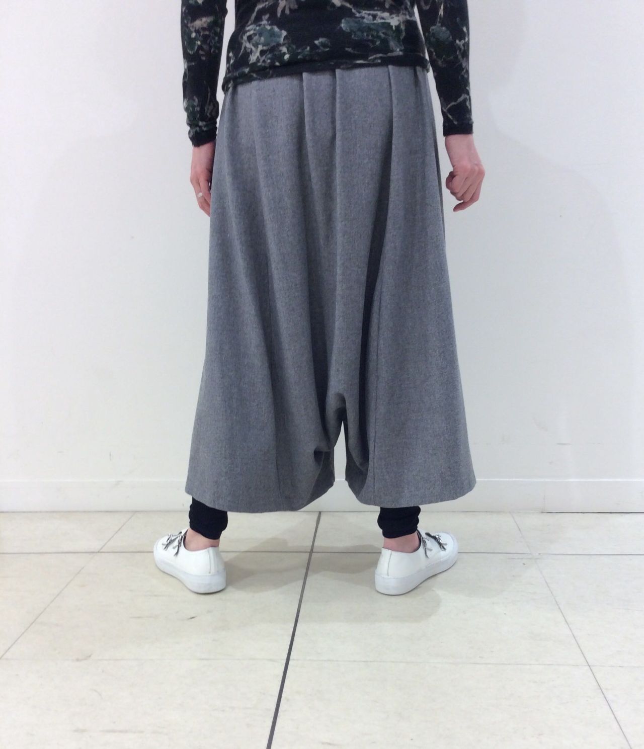 パンツはゆるりとしたツイード風のサルエルパンツです。