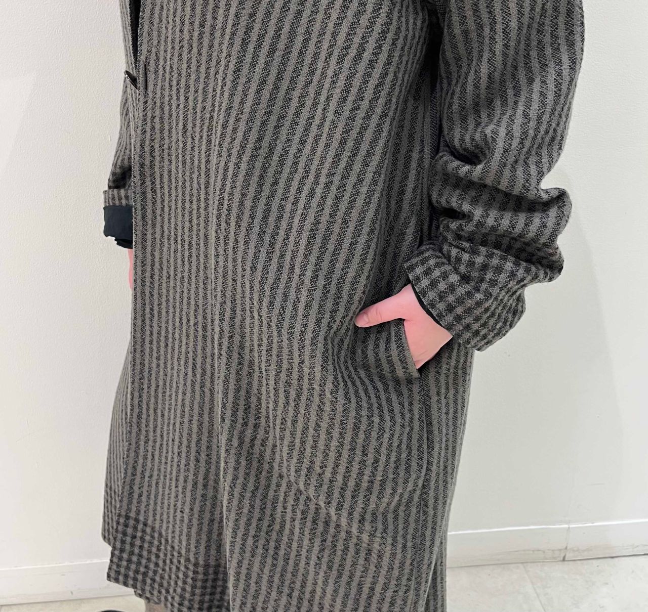 甘めに織ってタンブラーで縮絨させ、柔らかい風合いに仕上げている。