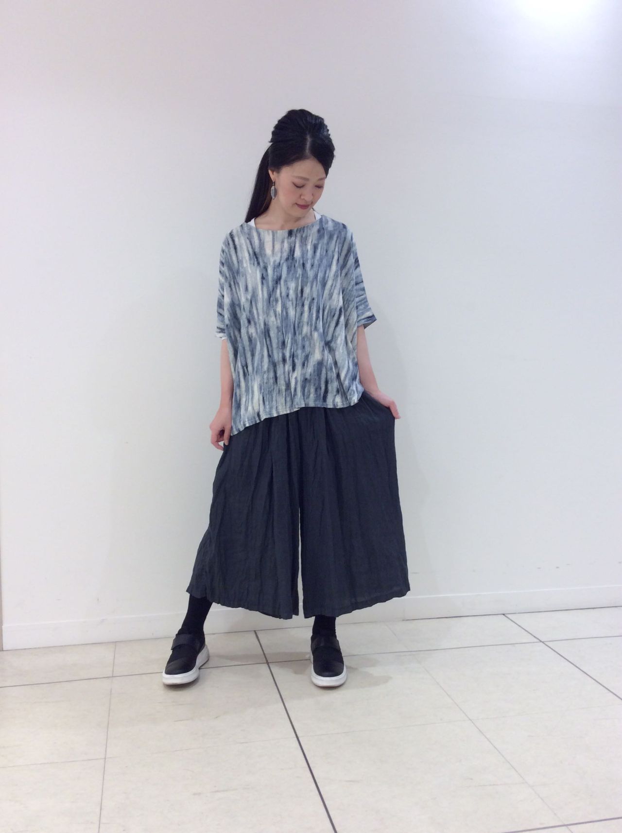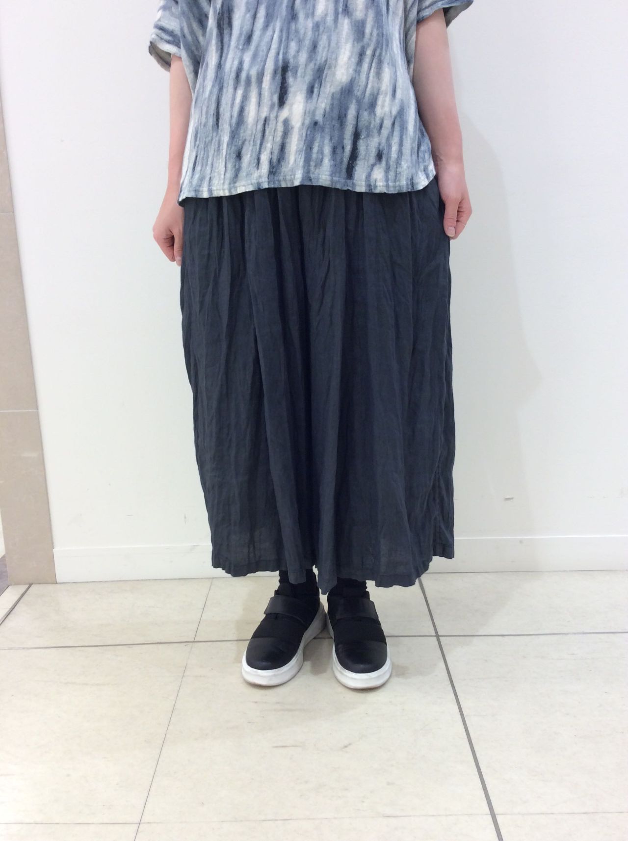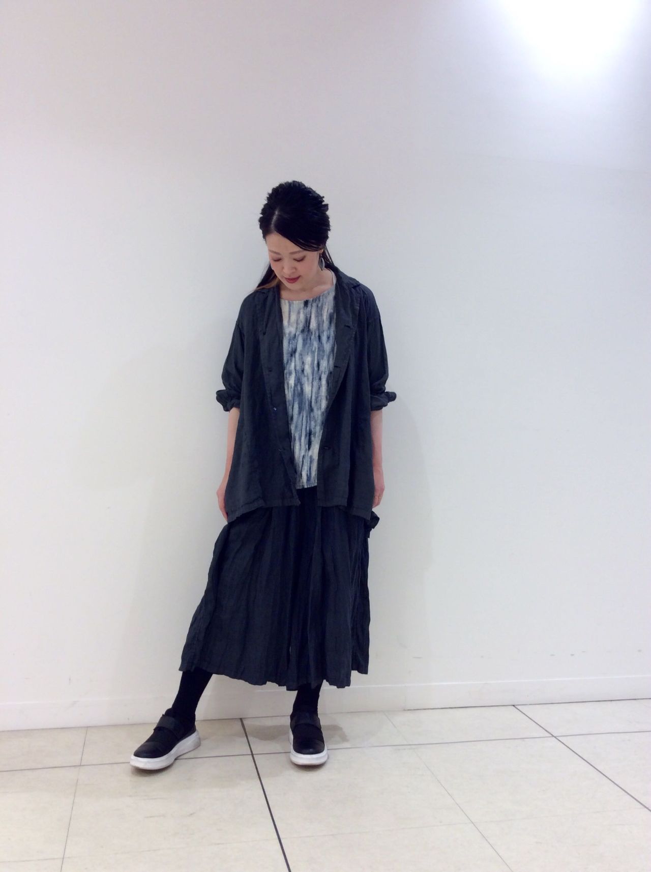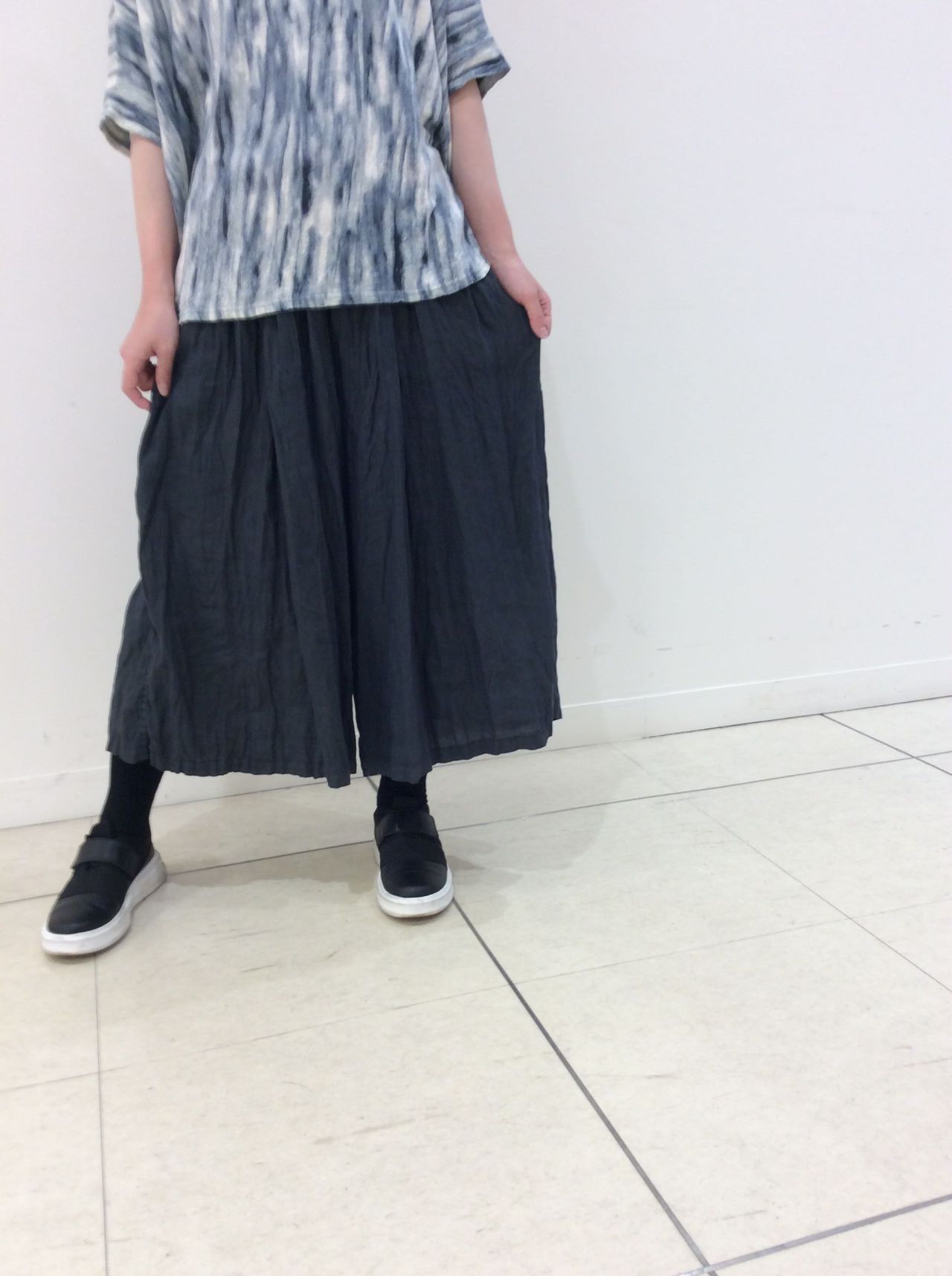 横幅がゆったりしていますが、着ていただくとリネンの自然な落ち感ですっきり見えるシルエットです。