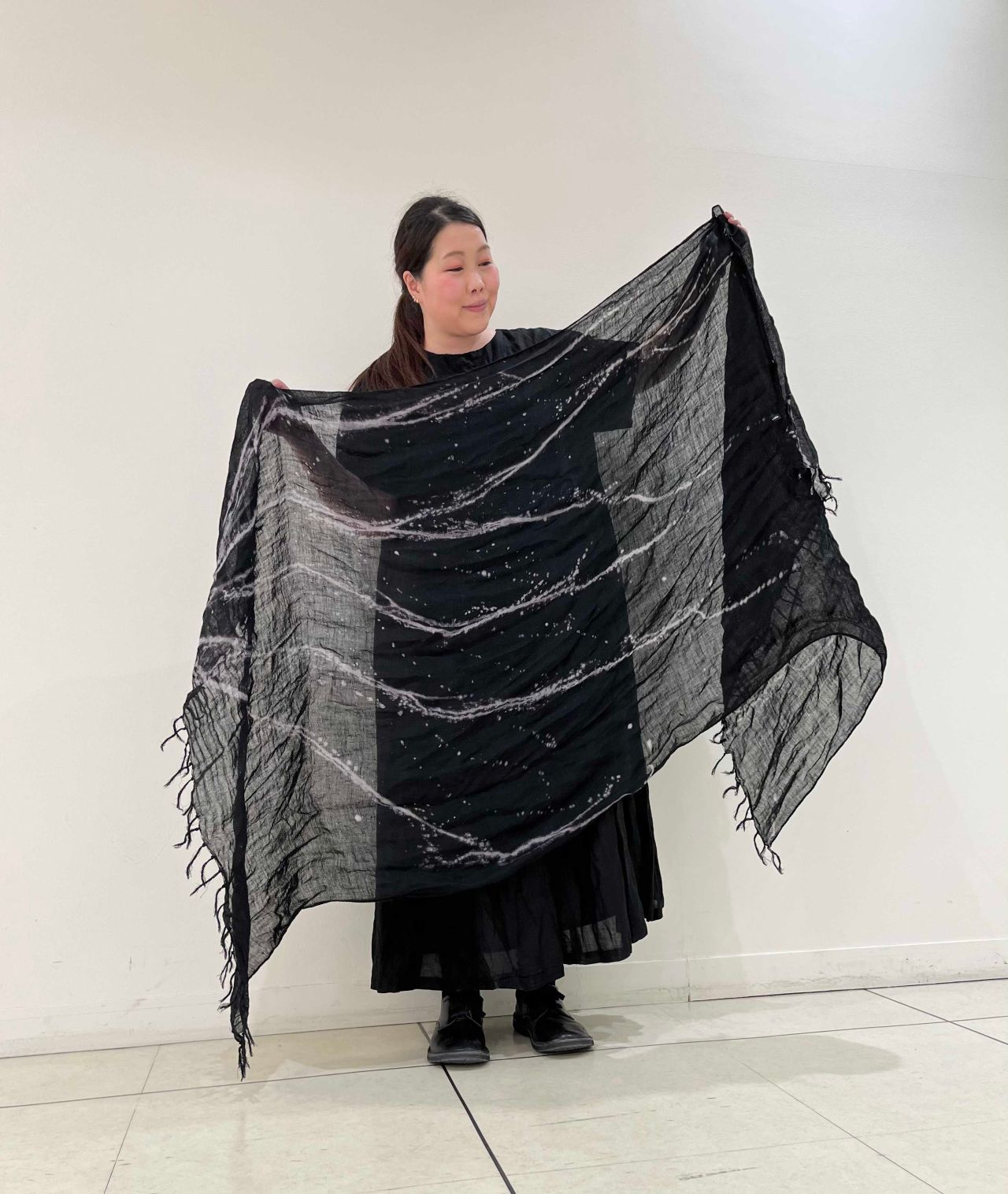 大胆でドラマチックなタッチが印象的なストール。