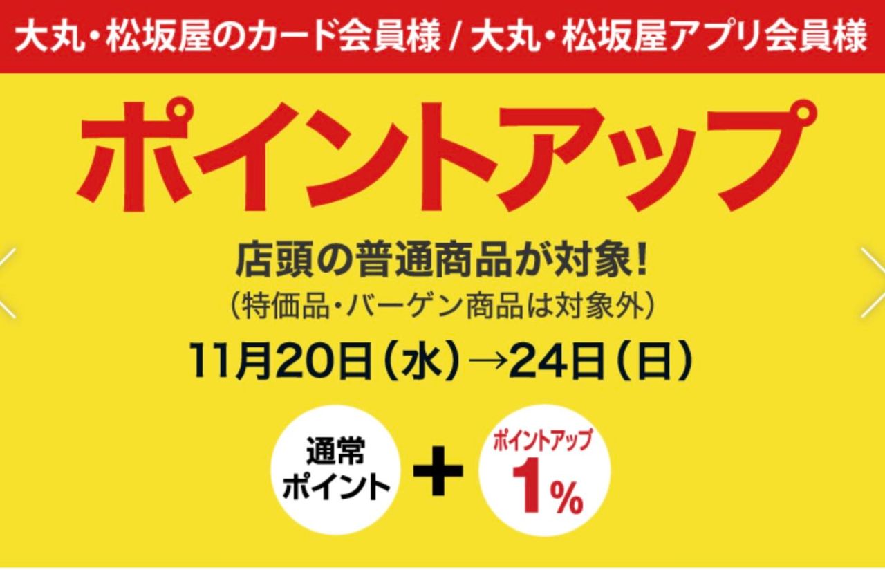 ※大丸・松坂屋のポイントが対象です。QIRA[キラ]ポイントは、ポイントアップの対象外です。店頭の普通商品(当社通常販売価格商品)が対象です。(特価品・バーゲン商品は対象外となります)