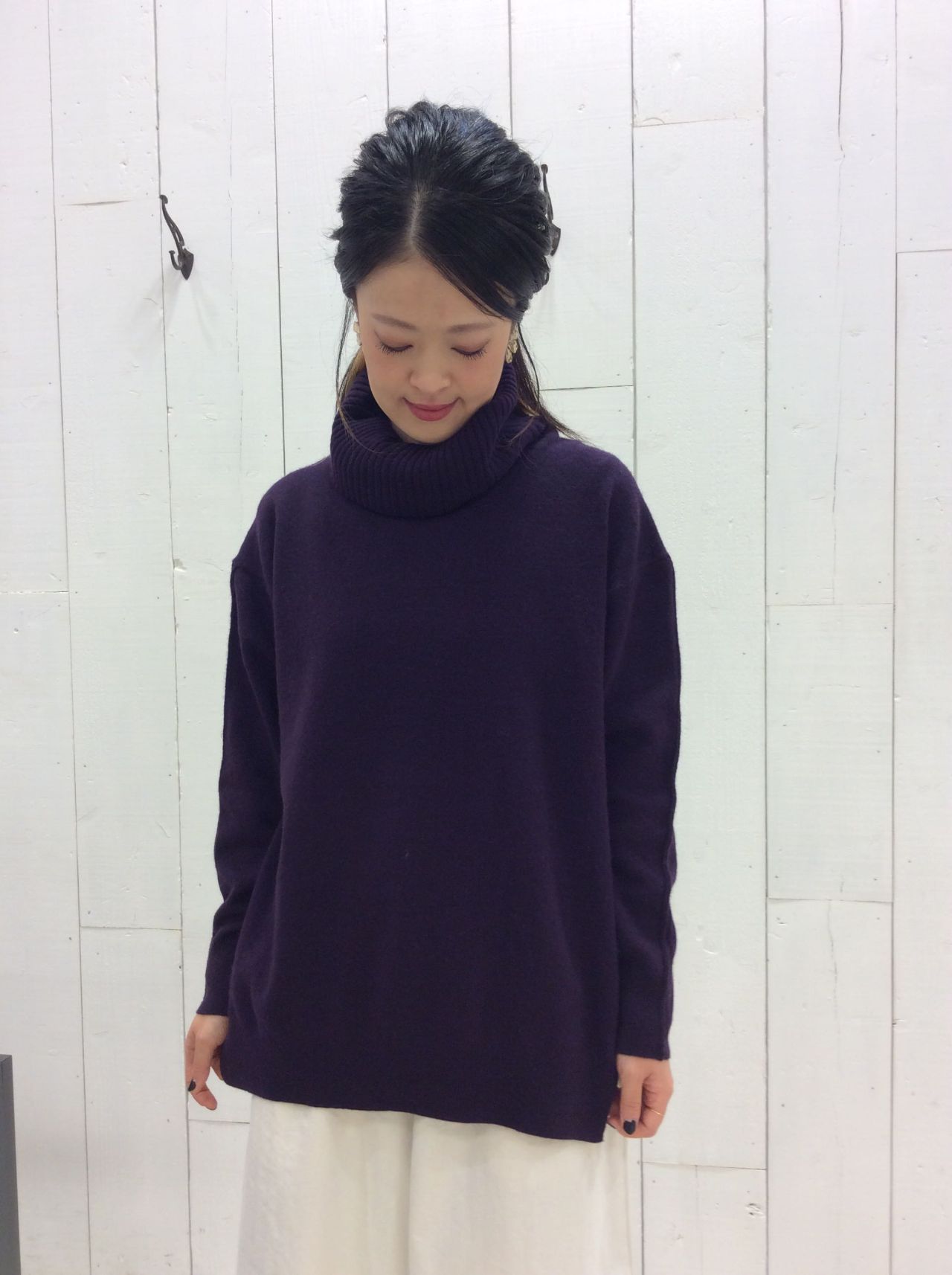 肌触りがふんわりと柔らかなオフタートルプルオーバーです。