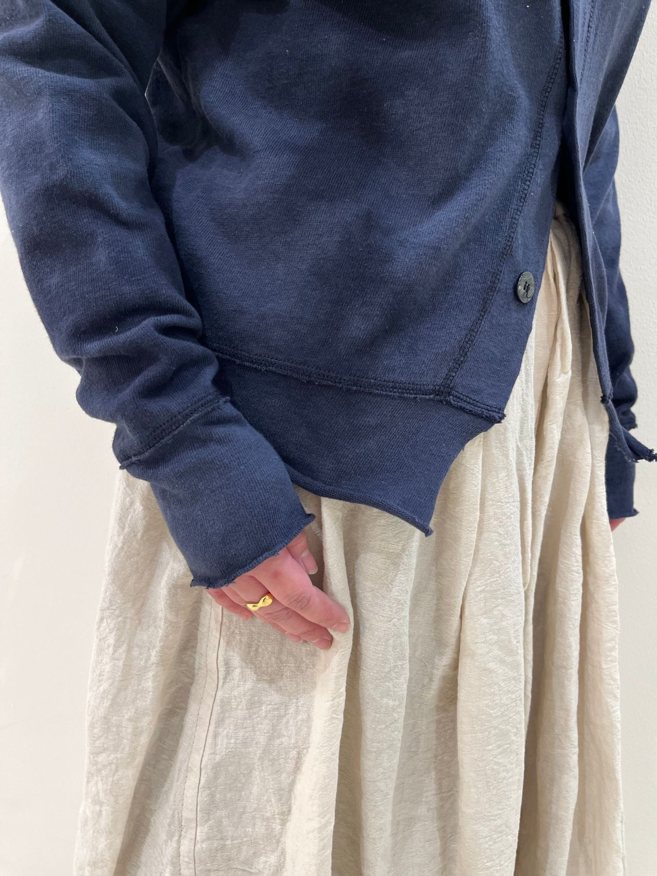 首元のクルーネックや裾とリブが切りっぱなしでパドカレらしさを表現しております。