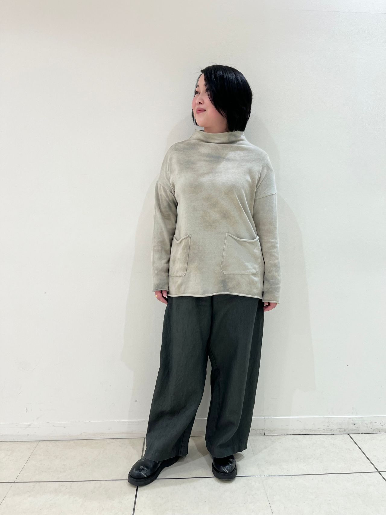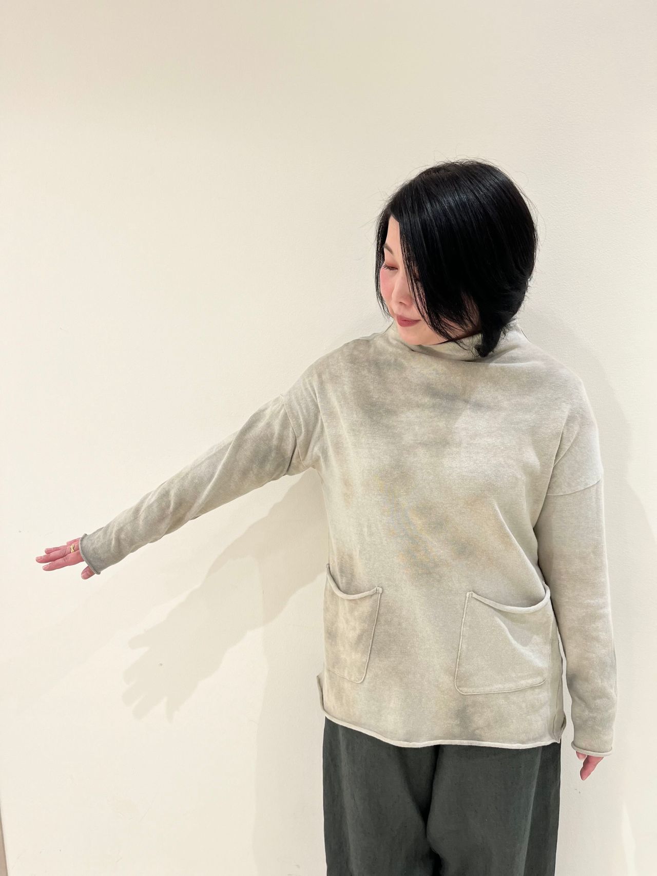柔らかく優しい肌触りで、オフハイネックが魅力的なプルオーバーです。