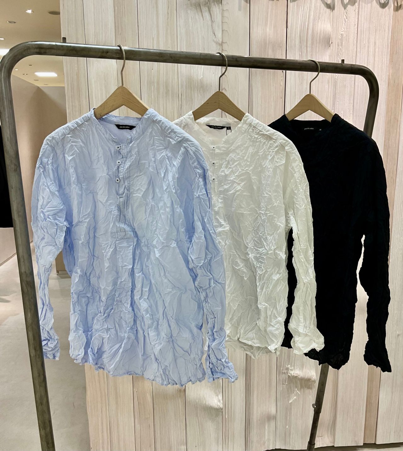 夏に着れる清涼感のあるシワ加工の素材を目指して、通常より薄く、清涼感が出るように仕上がっています。