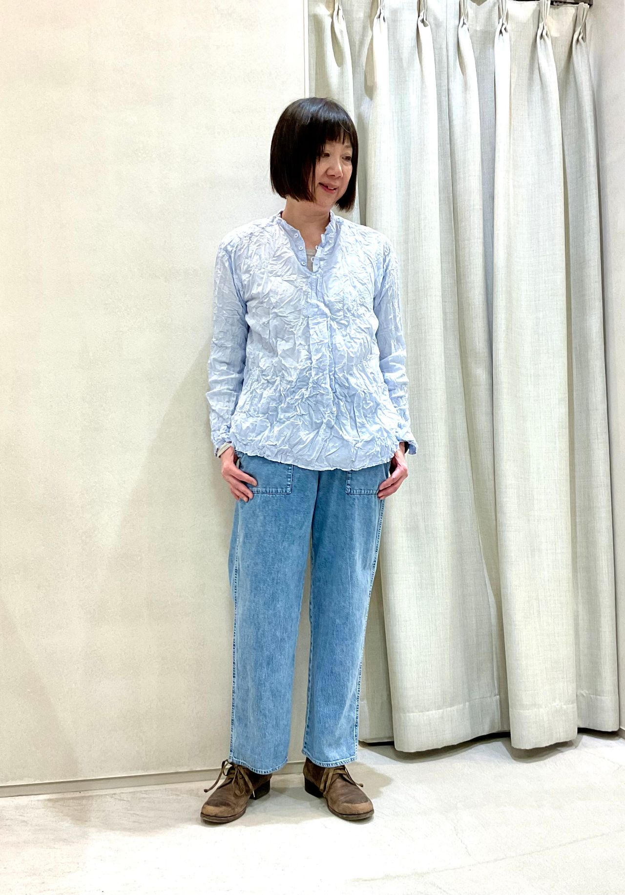 お洗濯のたびにしわ感は薄れていきますがまた一味違う表情への経年変化をお楽しみください。