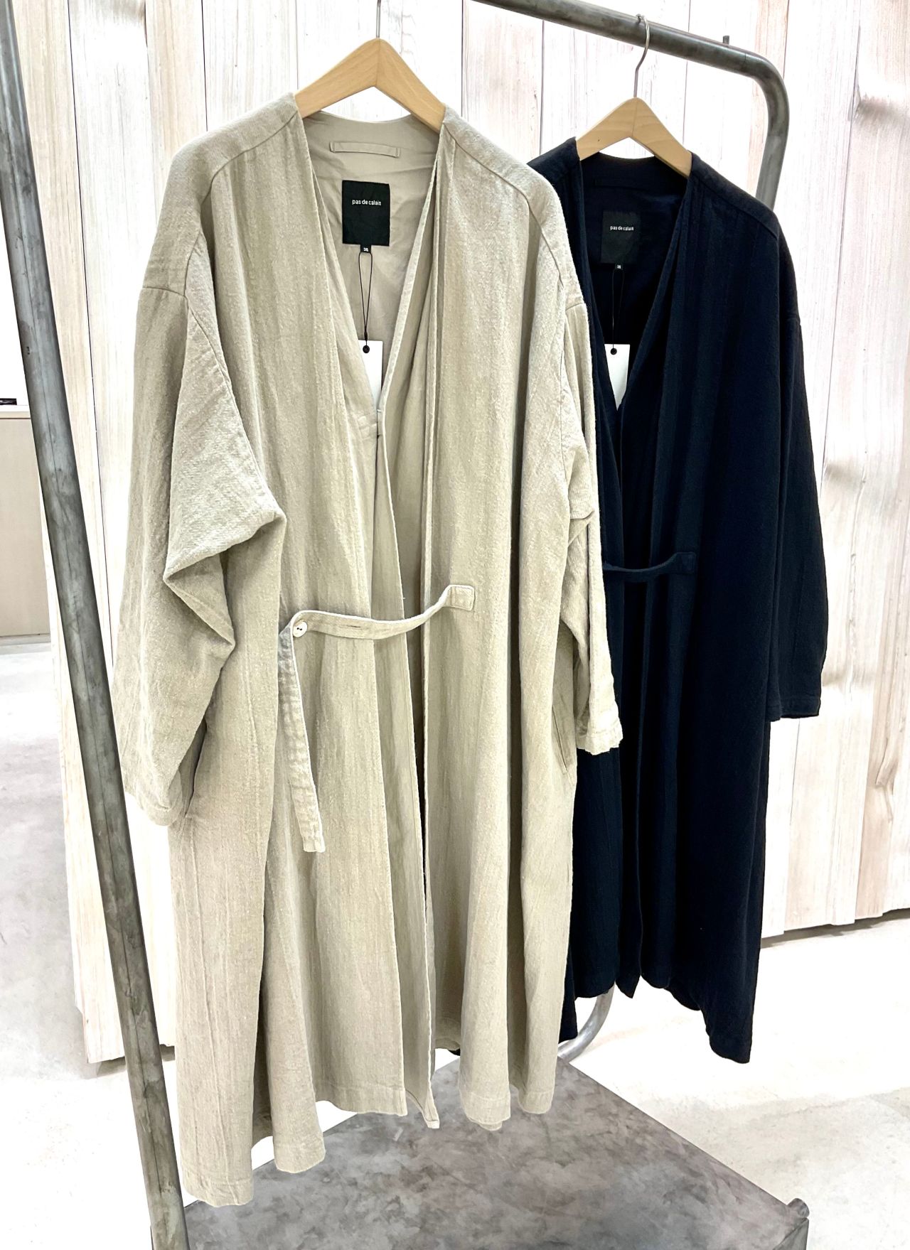 ナチュラルな風合いの先染めコットンリネンカルゼコートです。