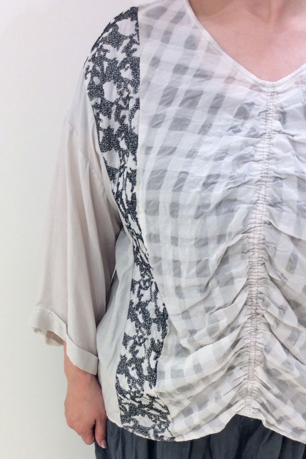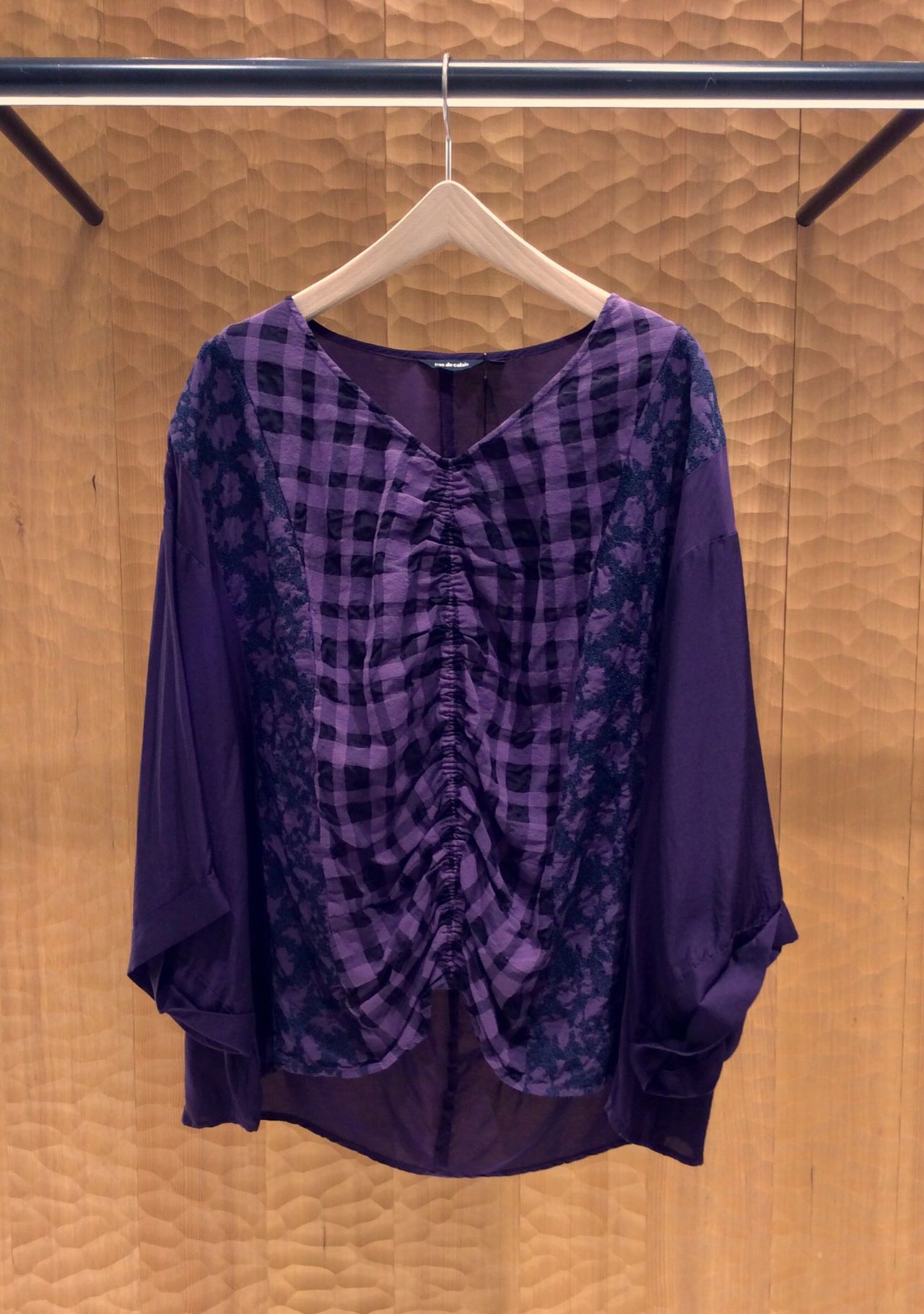 刺繍とチェックのコントラストが美しいブラウスです。