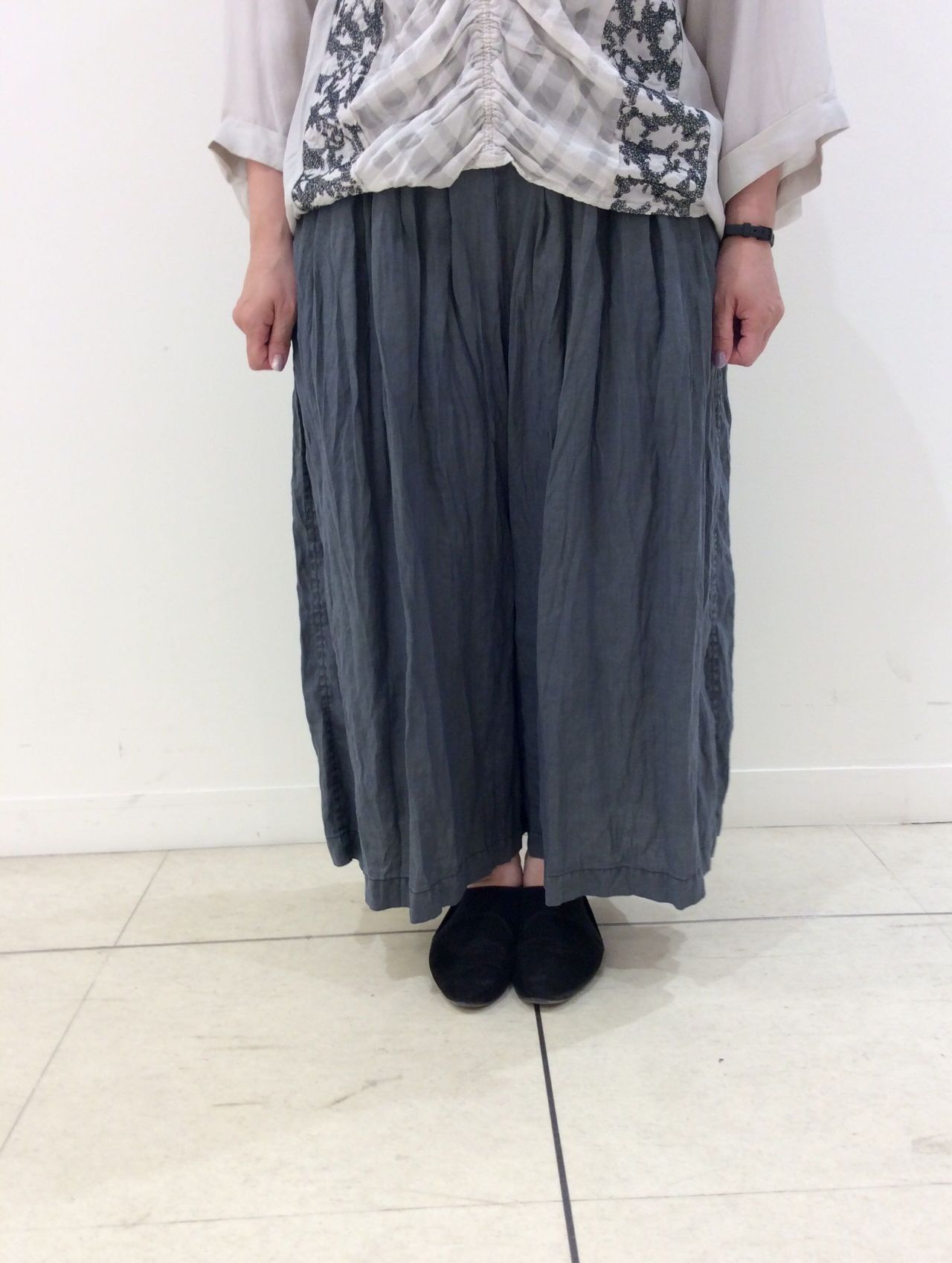 落ち感があるので、ゆったりなのに広がらず、シルエットが綺麗なパンツです。