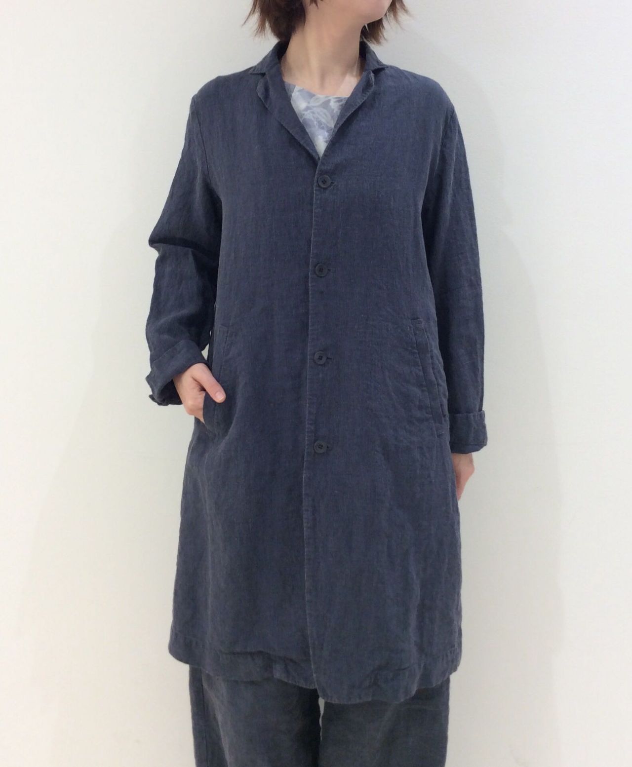 コートはシンプルなシングルの4つ釦に、後身頃に共地ベルトが付いたデザインです。