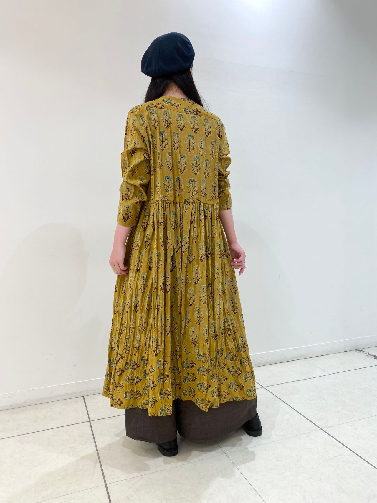 ブロックプリント生地で作った、Vネックカーディガンドレスです。