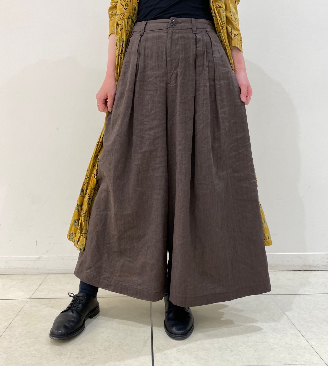 タックを左右に2本づつ入れた、ガウチョパンツです。