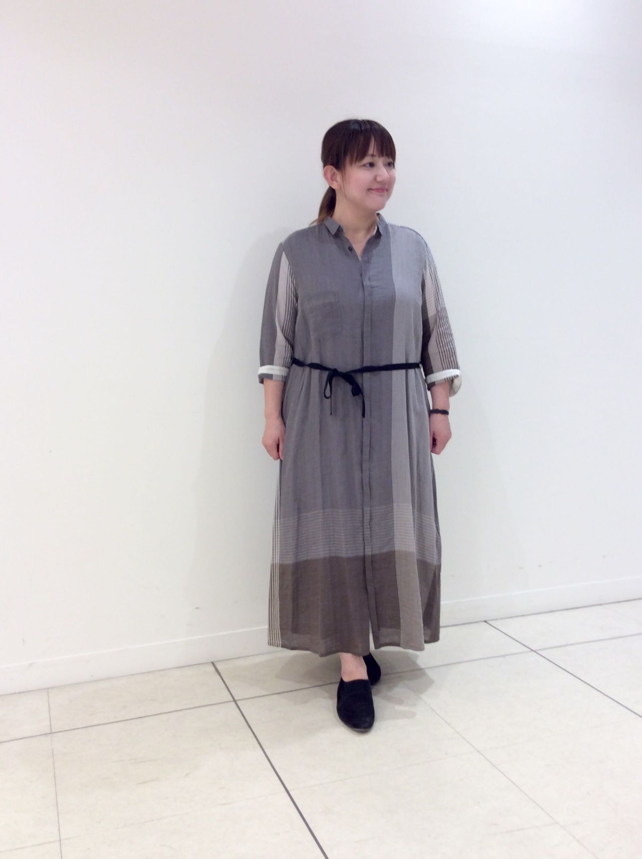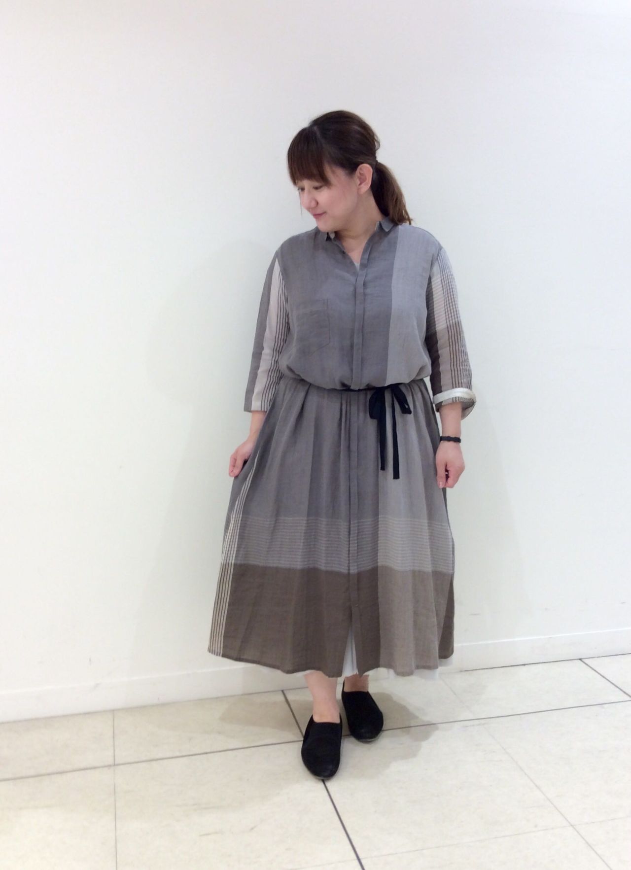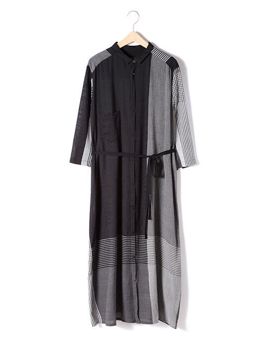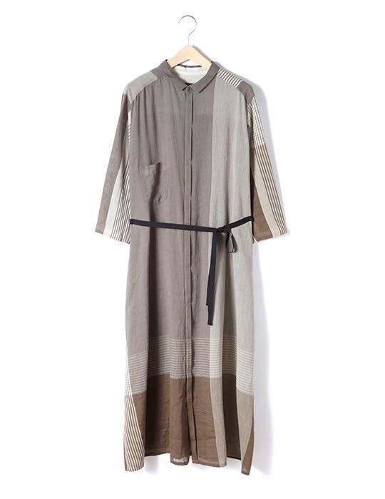 ワイドな柄がポイントのシャツワンピースです。さらっとしていて着心地軽いです。
