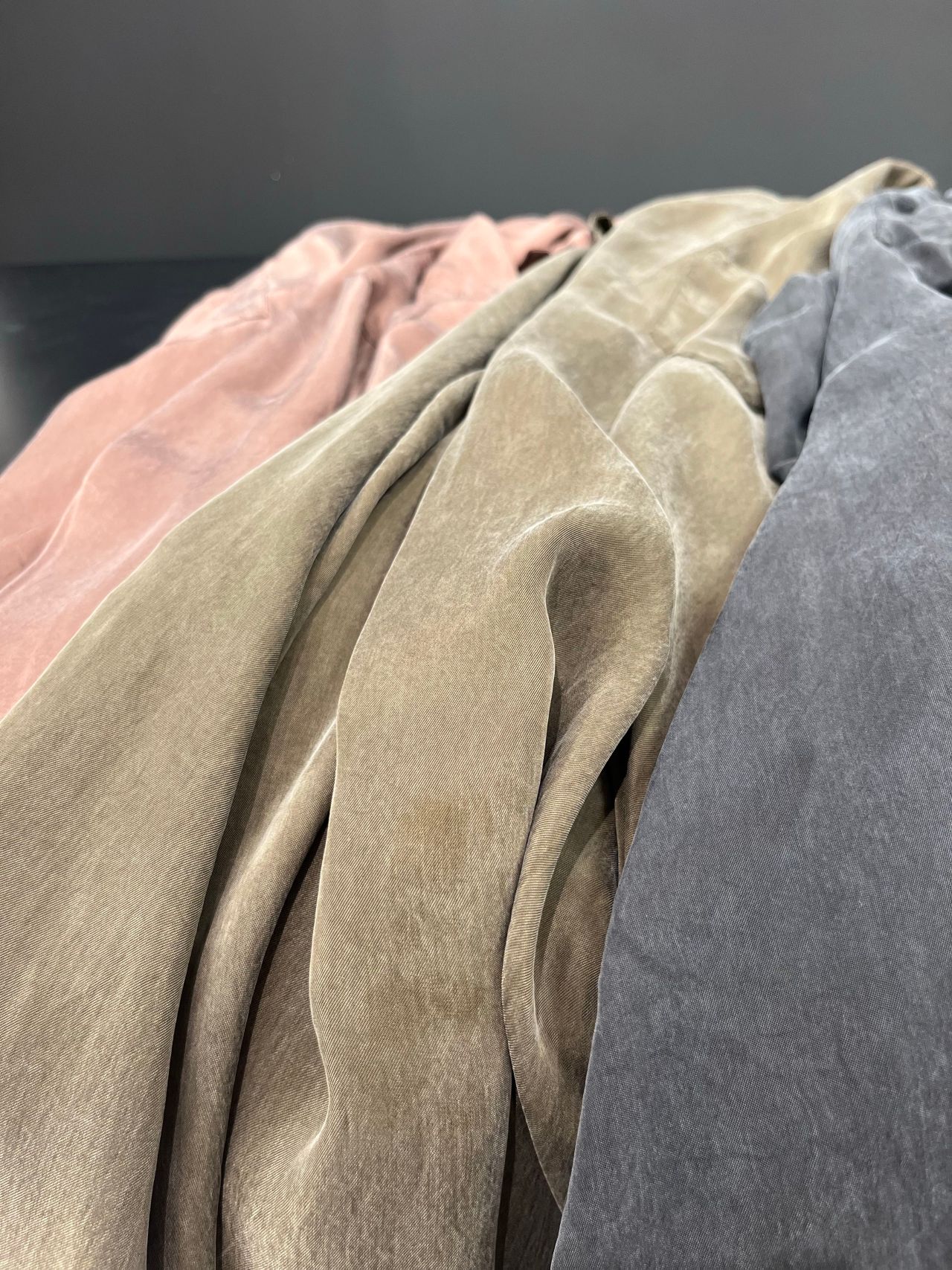 それでは、本日はキュプラ素材で作られた、ワンピースとパンツをご紹介いたします。