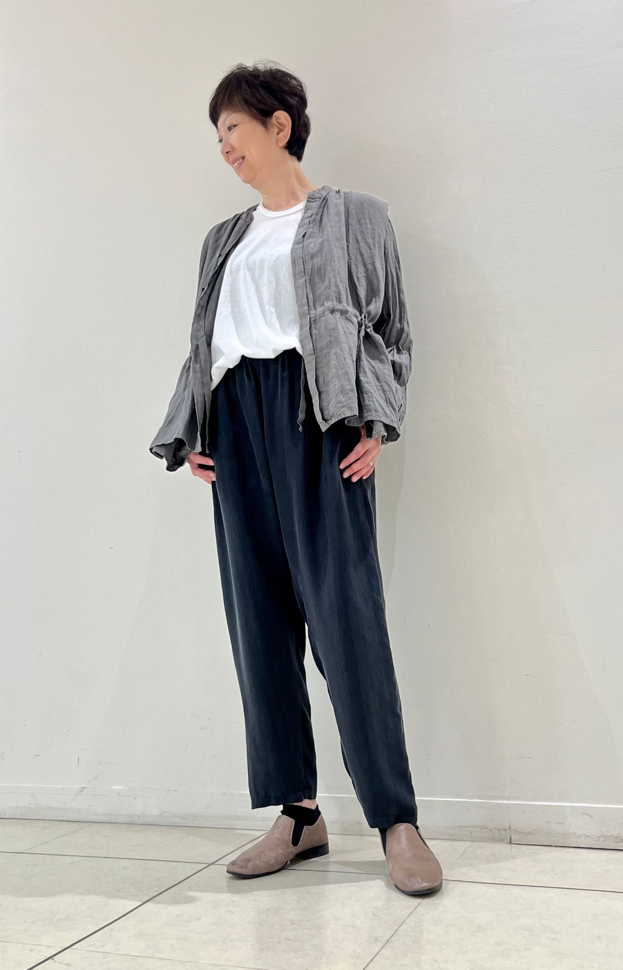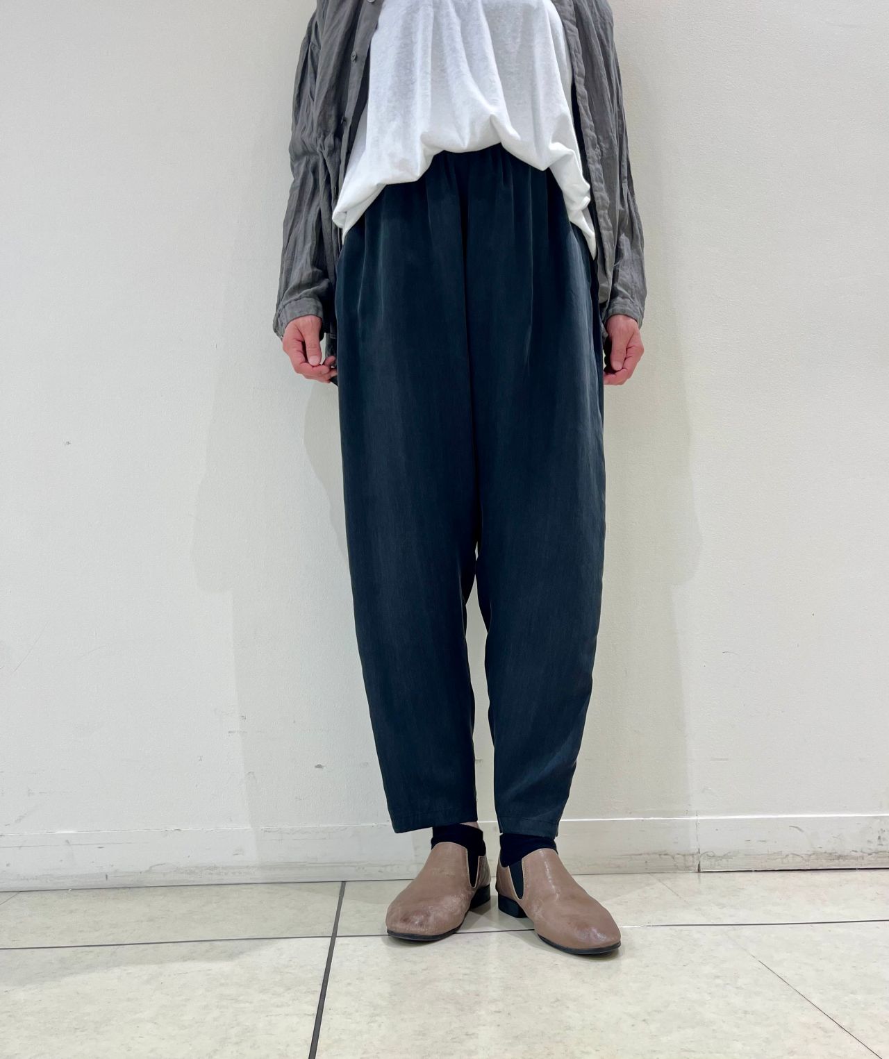 キュプラ特有のドレープ感で大人っぽい印象のルーズテーパードパンツ。