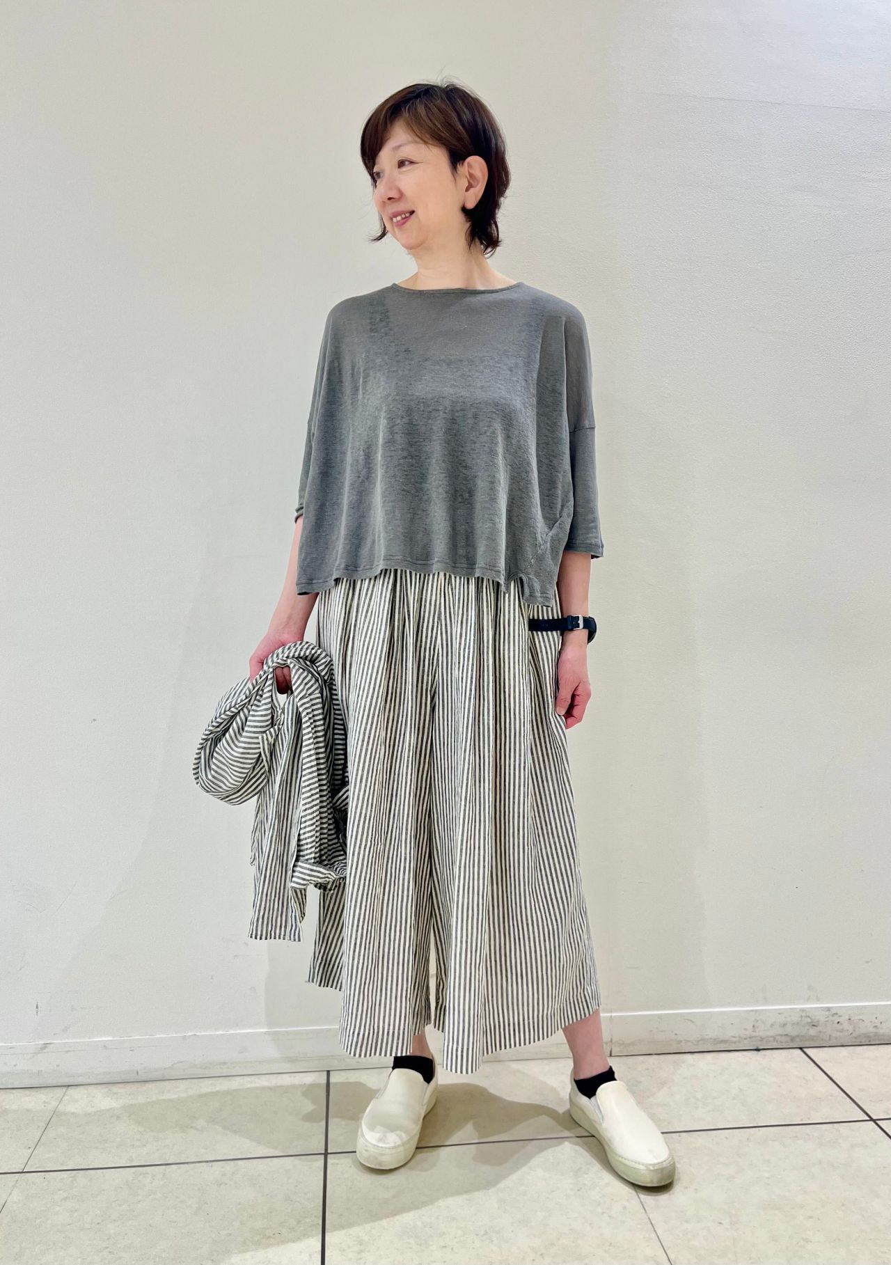 ・綿麻ストライプワイドパンツ