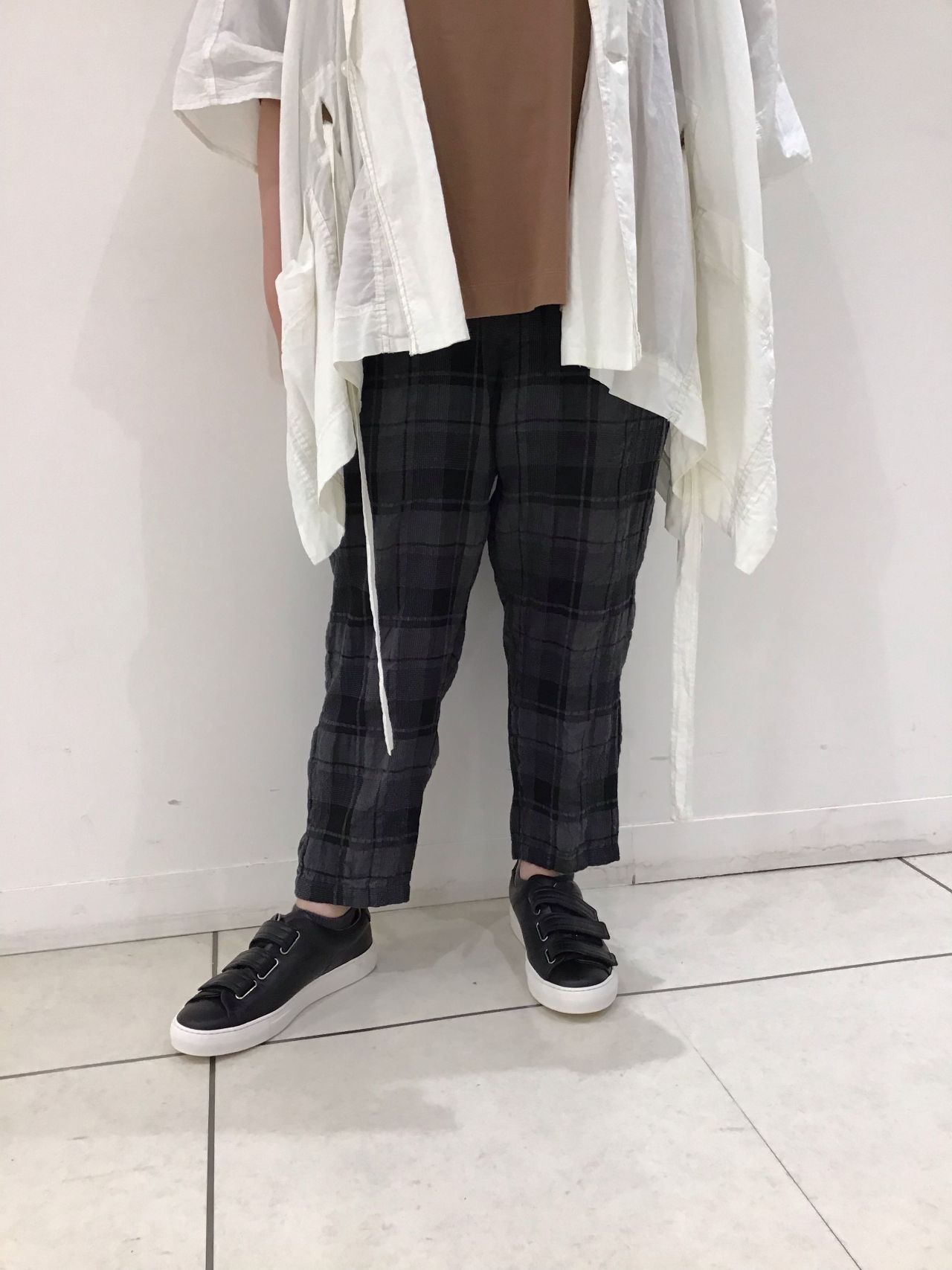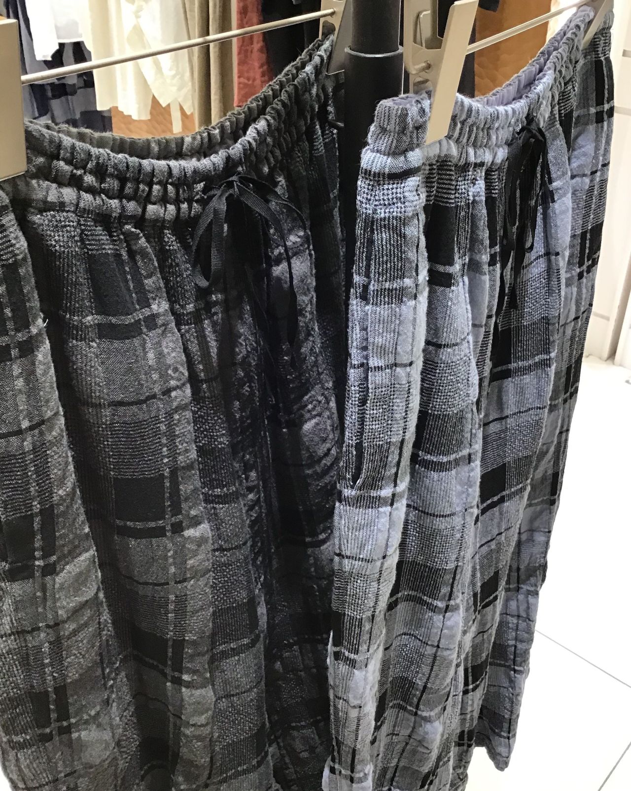 ポコポコとした素材感とウエストがゴム仕様とストレスフリーに履いて頂けます。