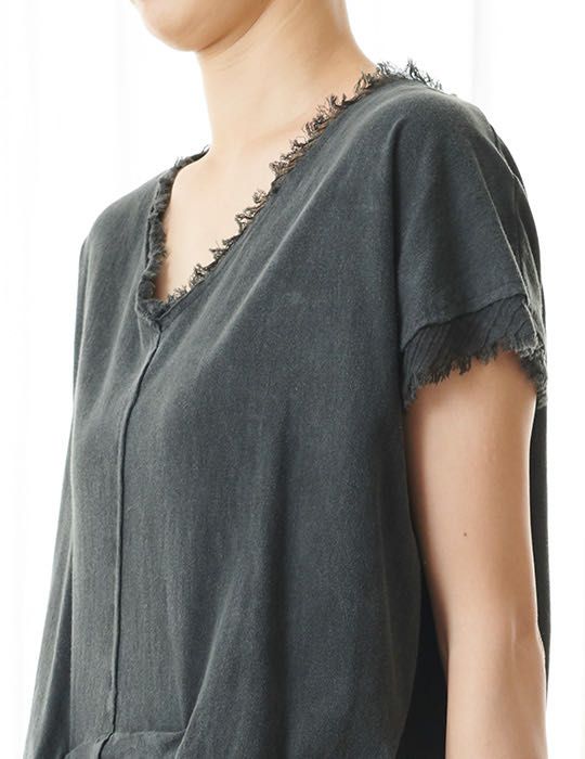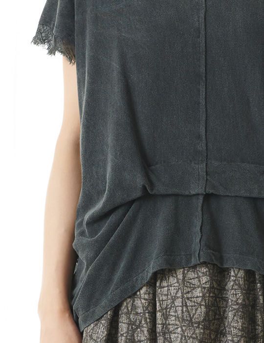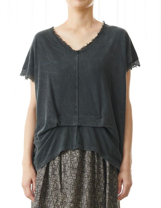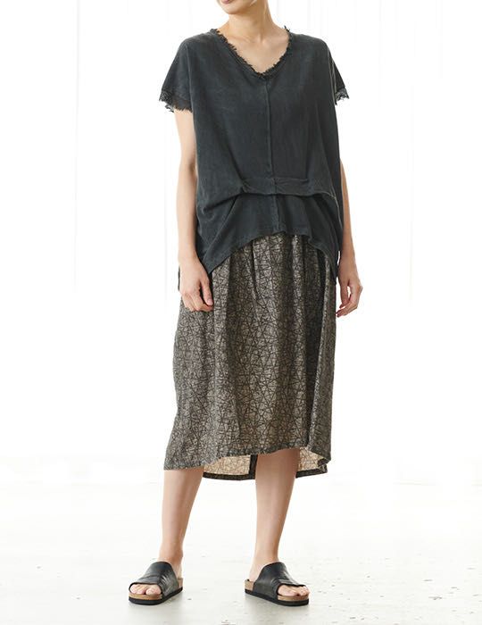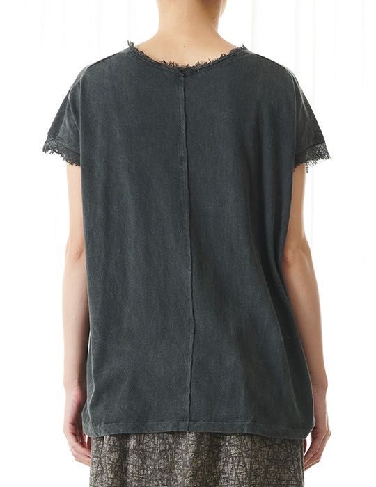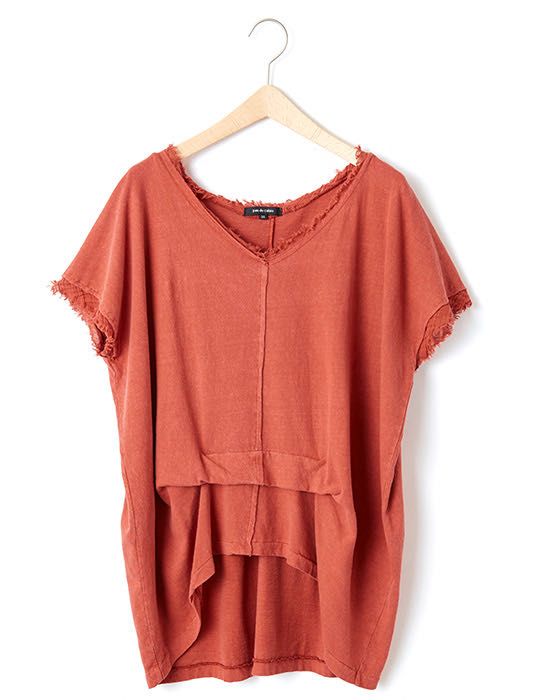後ろはお尻がかかるくらいの着丈なので、ゆったり一枚着で着て頂けます。これから夏に向けてGETしておきたい半袖ですよね。