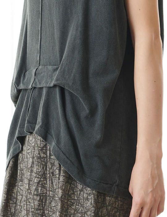 前身頃のウエスト位置に横のタックを入れてドレープ感のシルエットを楽しむことが出来ます。