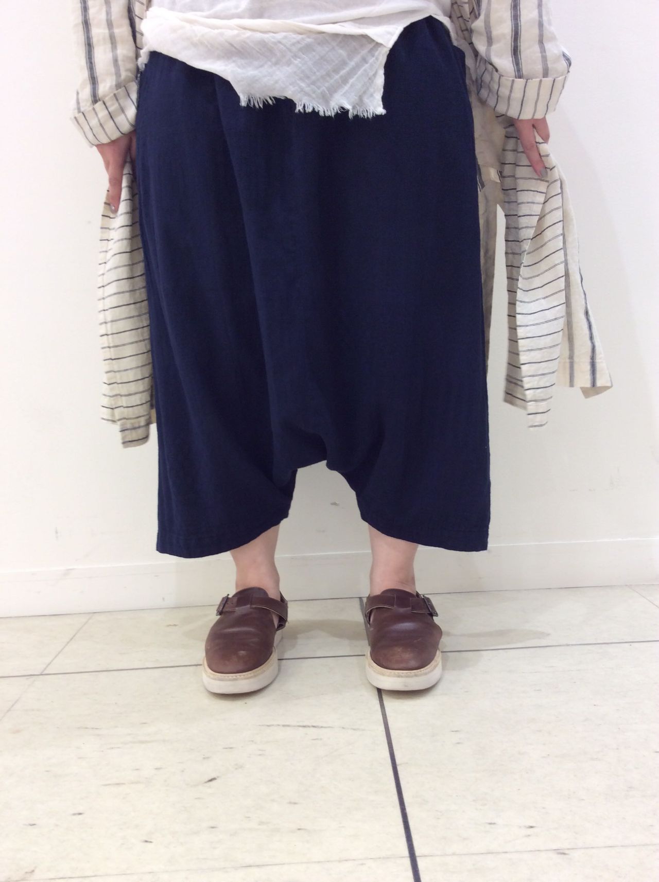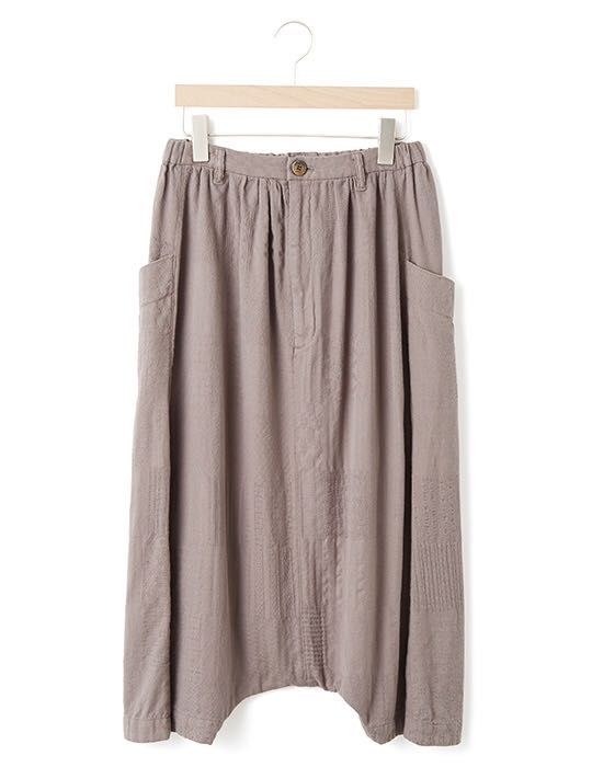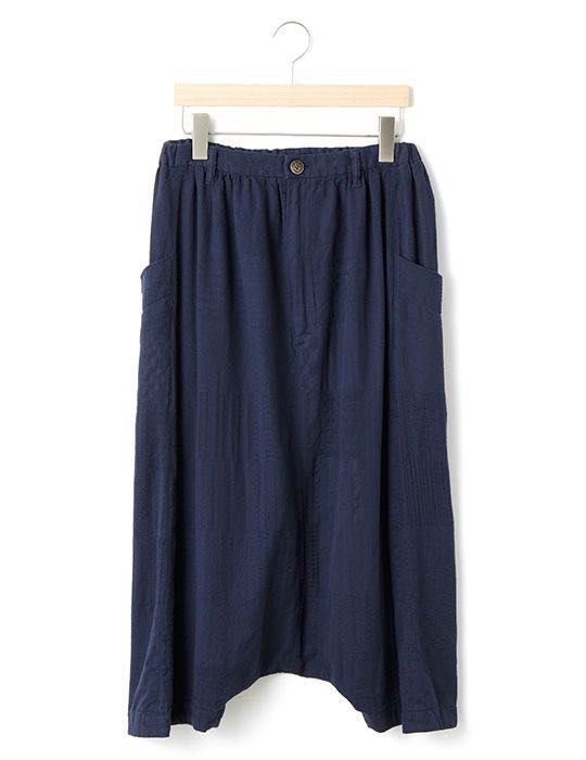 タオルジャカード・パッチワーク柄を使用した、股上がたっぷりと深い分量感あるサルエルパンツ。