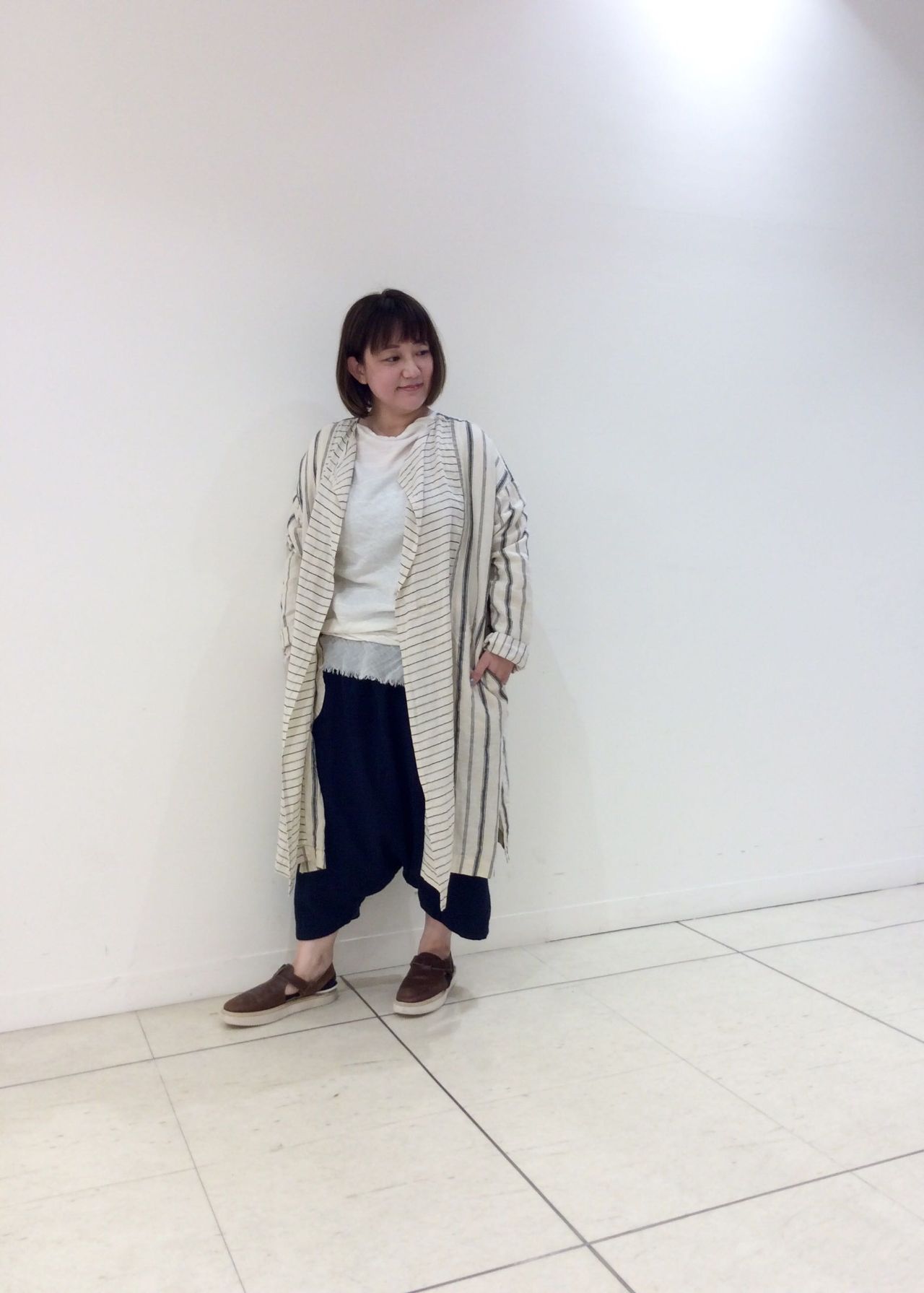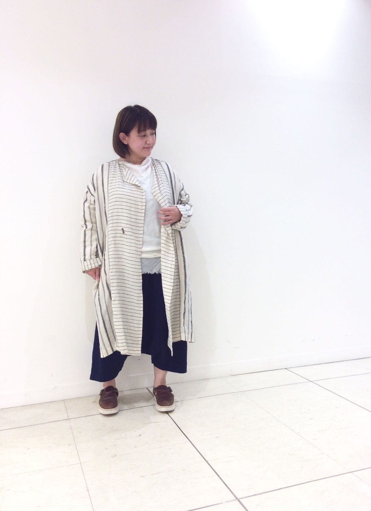 柔らかいリネン素材でカーディガン感覚で気軽に羽織れて、コートのインナーにもなるので今時期から着て頂けます。
