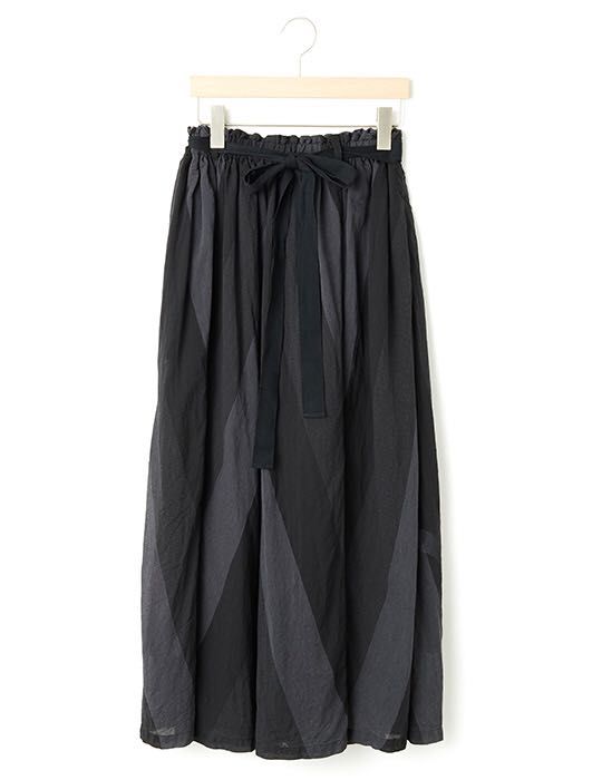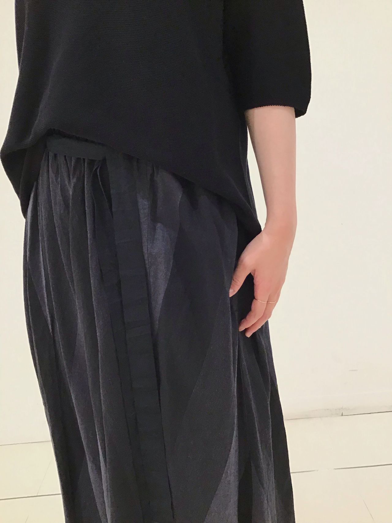 綿麻のラミーボイルのワイドボーダー地の目で切り替えた、8枚接ぎのスカート。