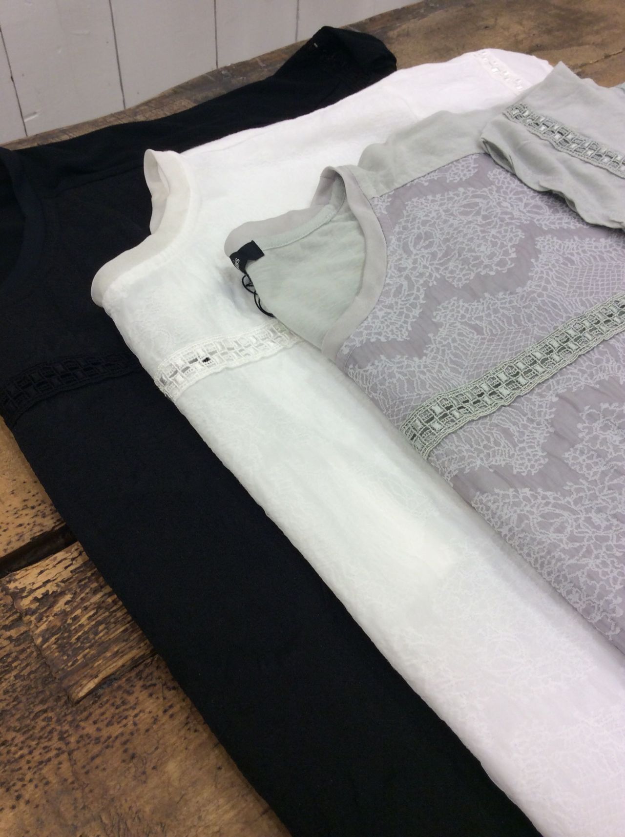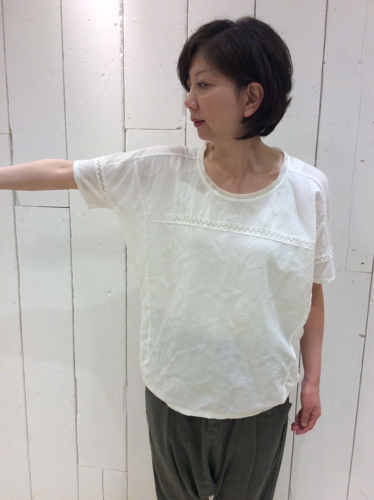 前全体と袖の一部にさりげなくレースになっているカットソーです。