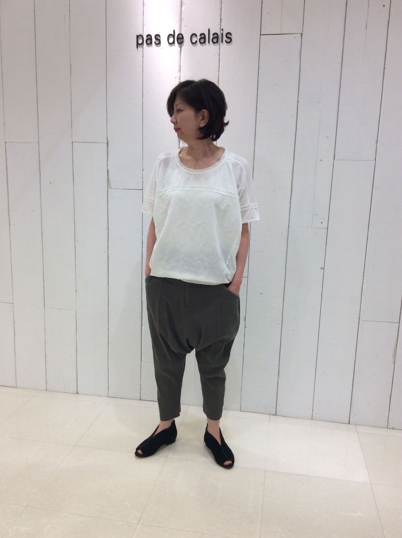 リネン.ヴィスコース.ストレッチサルエルパンツ no.8407 colグレー(着用)/ブラックsize¥19,440