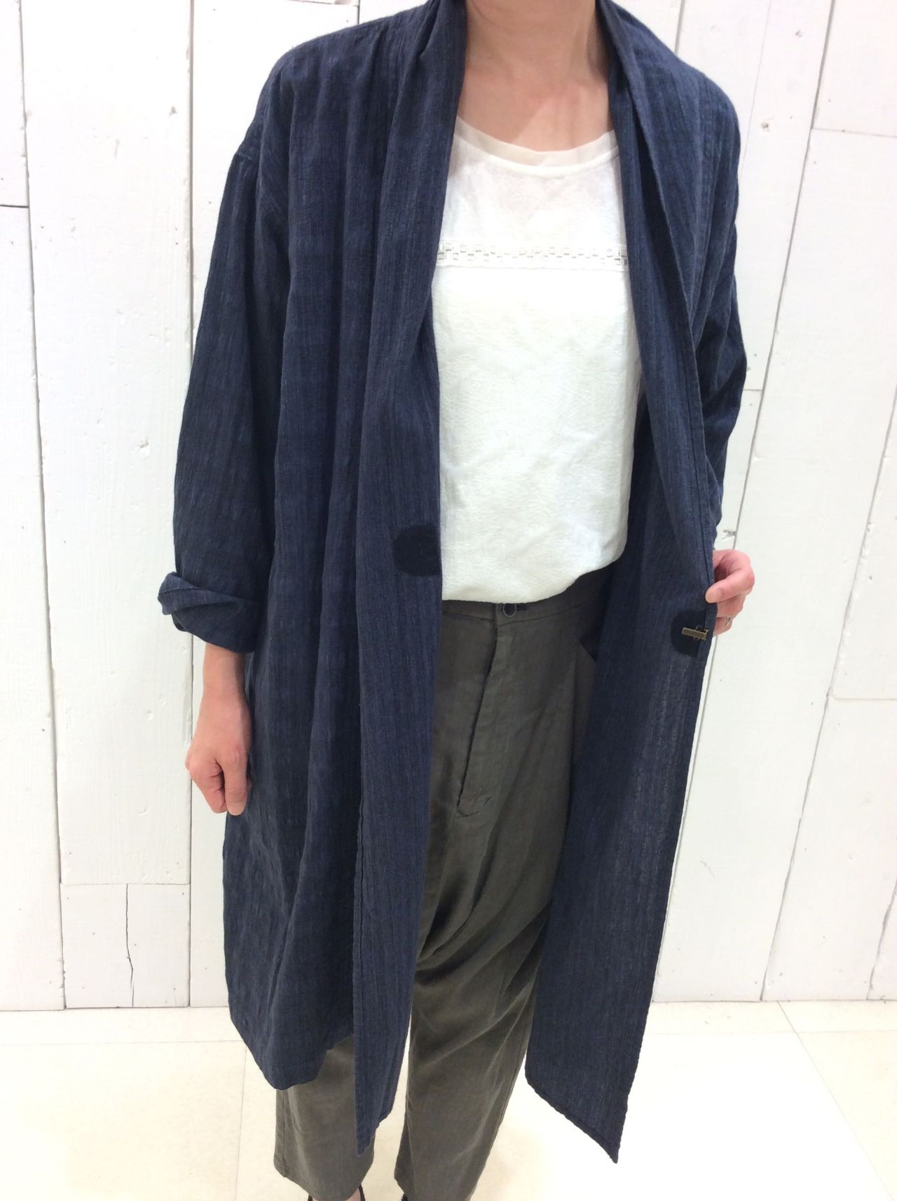 綿のふんわりとした肌触りのいい、軽いコートです。