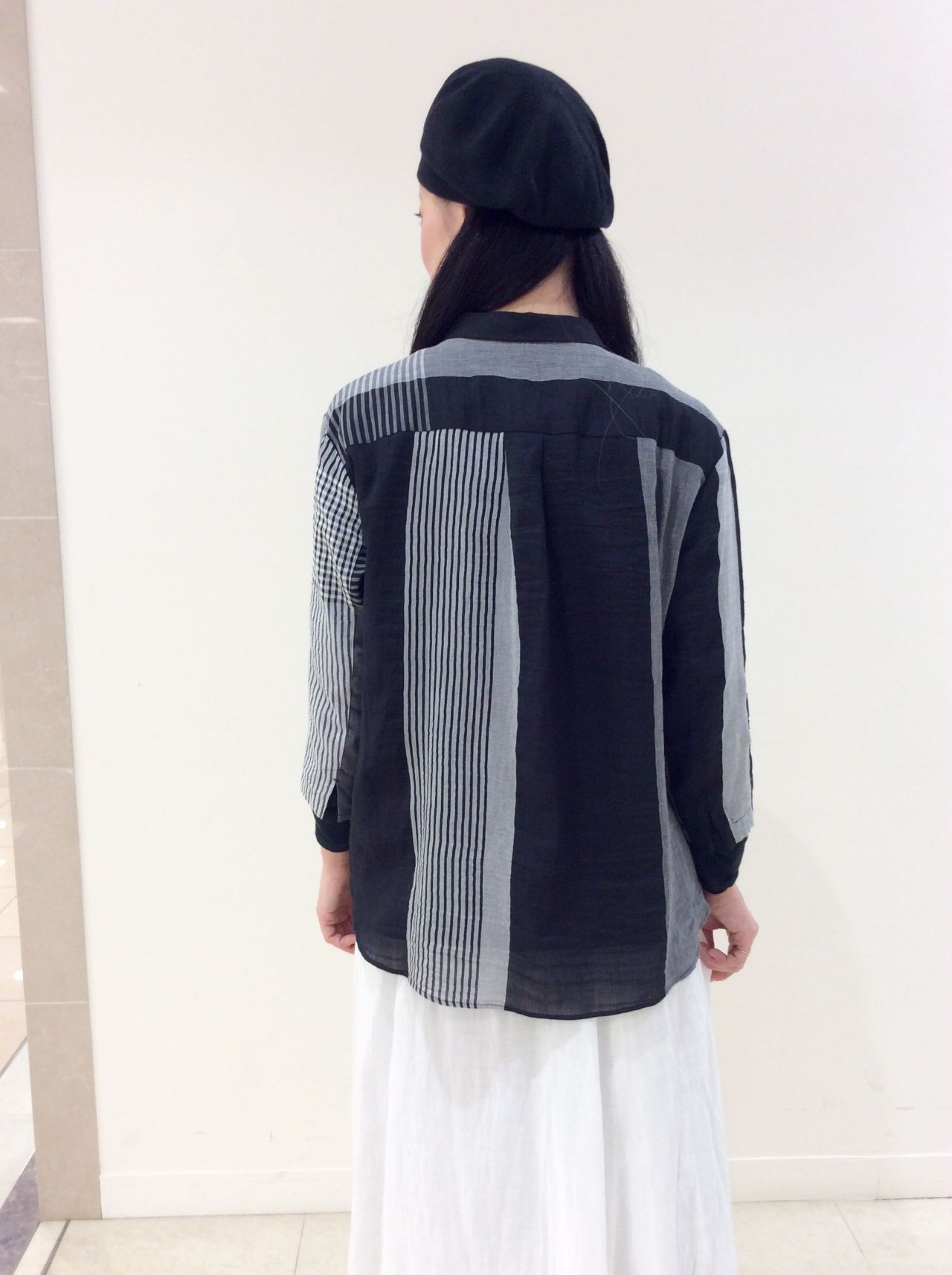 コットンバンブーパネル柄ブラウス