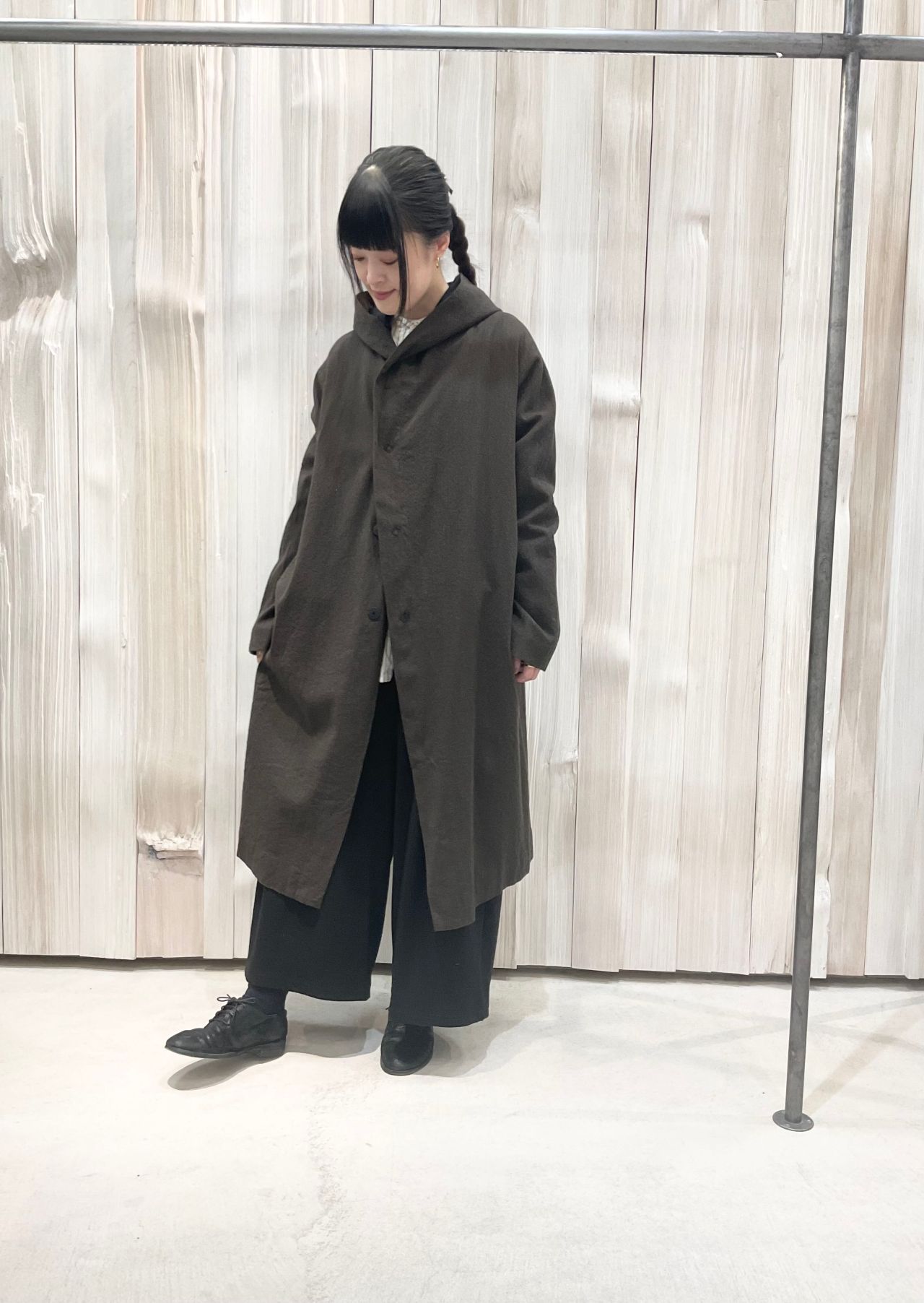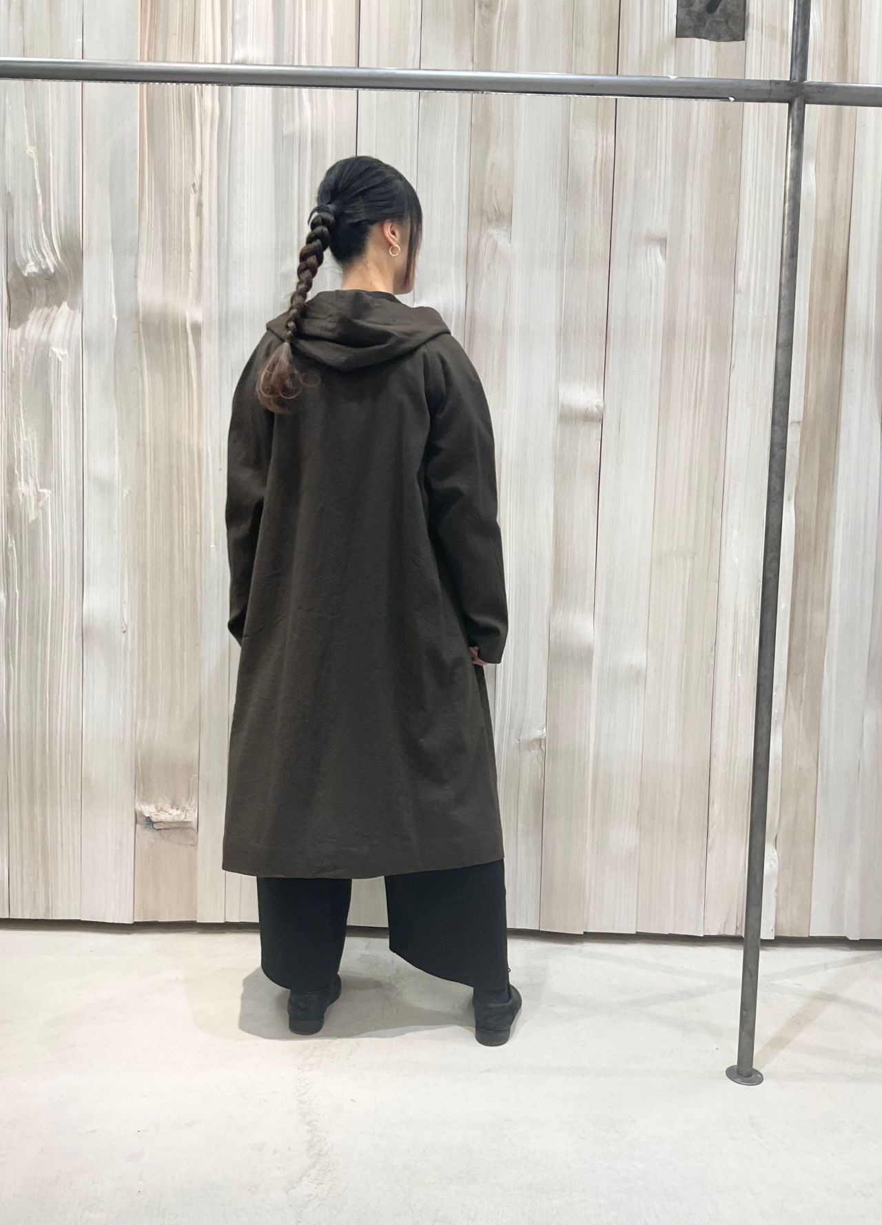 カジュアルからフェミニンまで万能に使える、ゆったりとしたフーデッドコート。