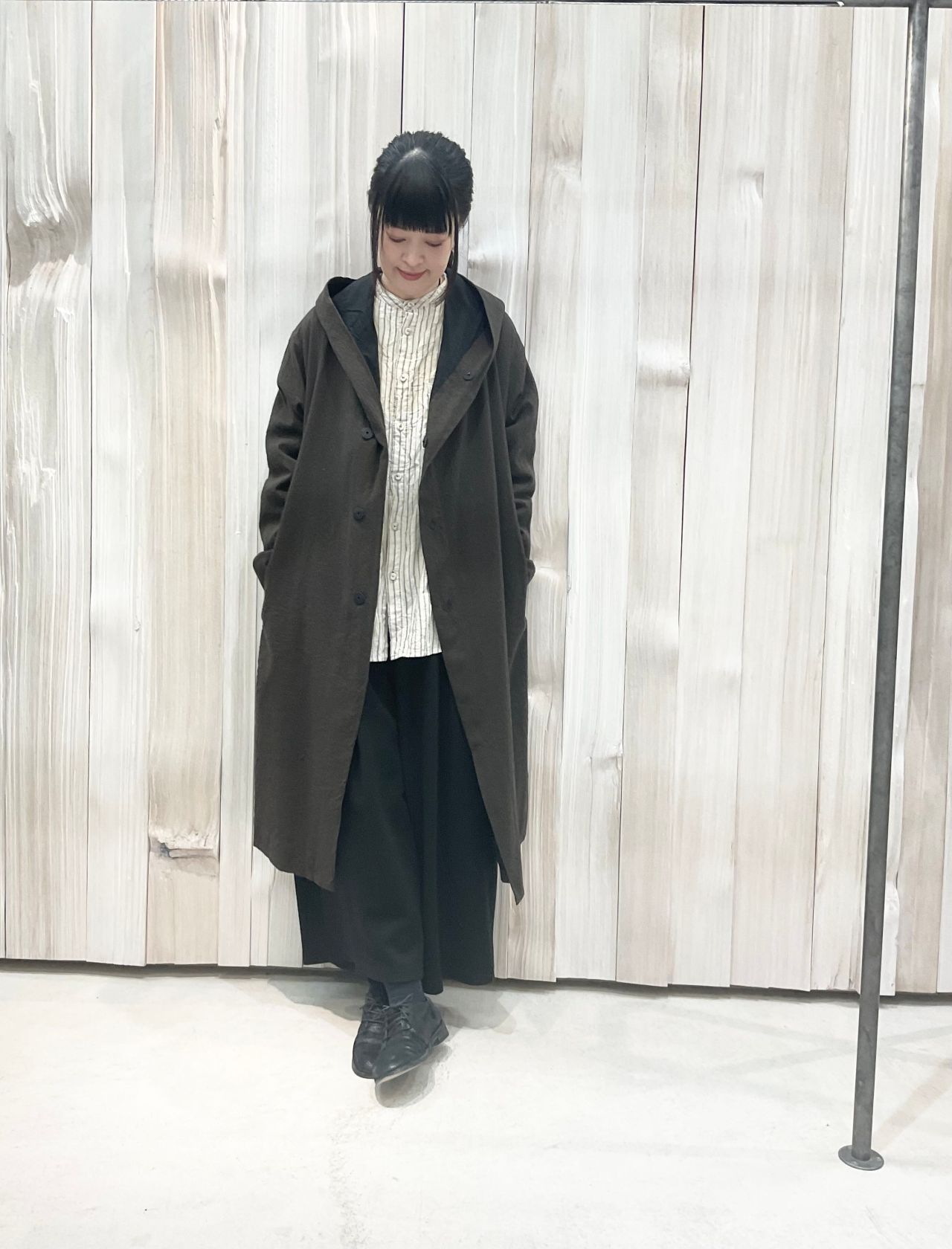 膨らみと柔らかさがあるナチュラルな風合いの素材感で、前身頃は斜めに重なるボタン開閉デザインがポイントになっています。