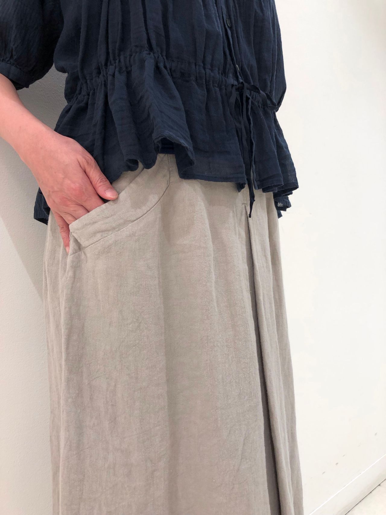 センターフロントにインバーテッドタックを入れたロングスカートです。