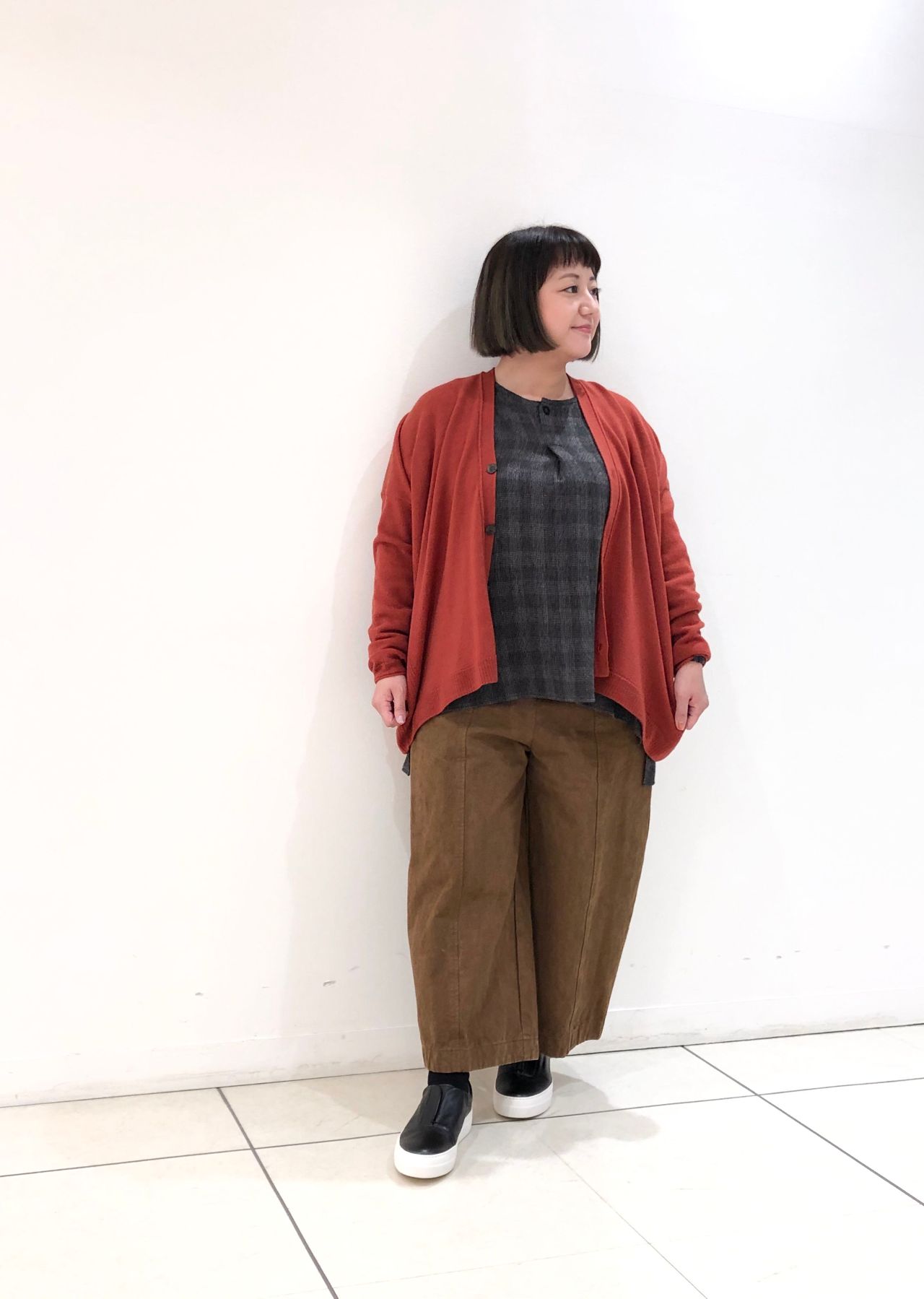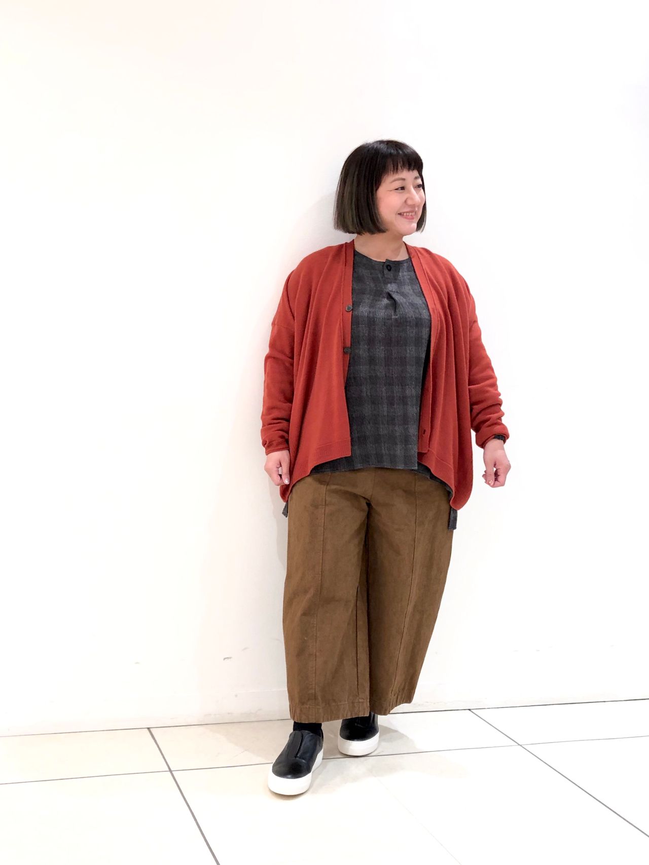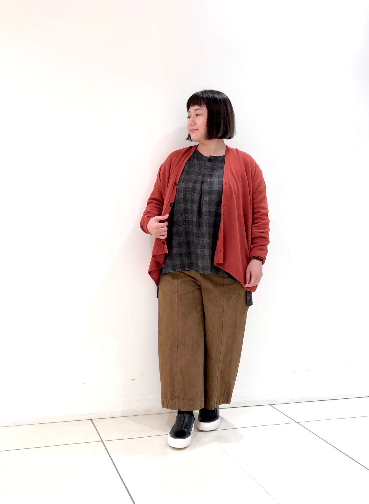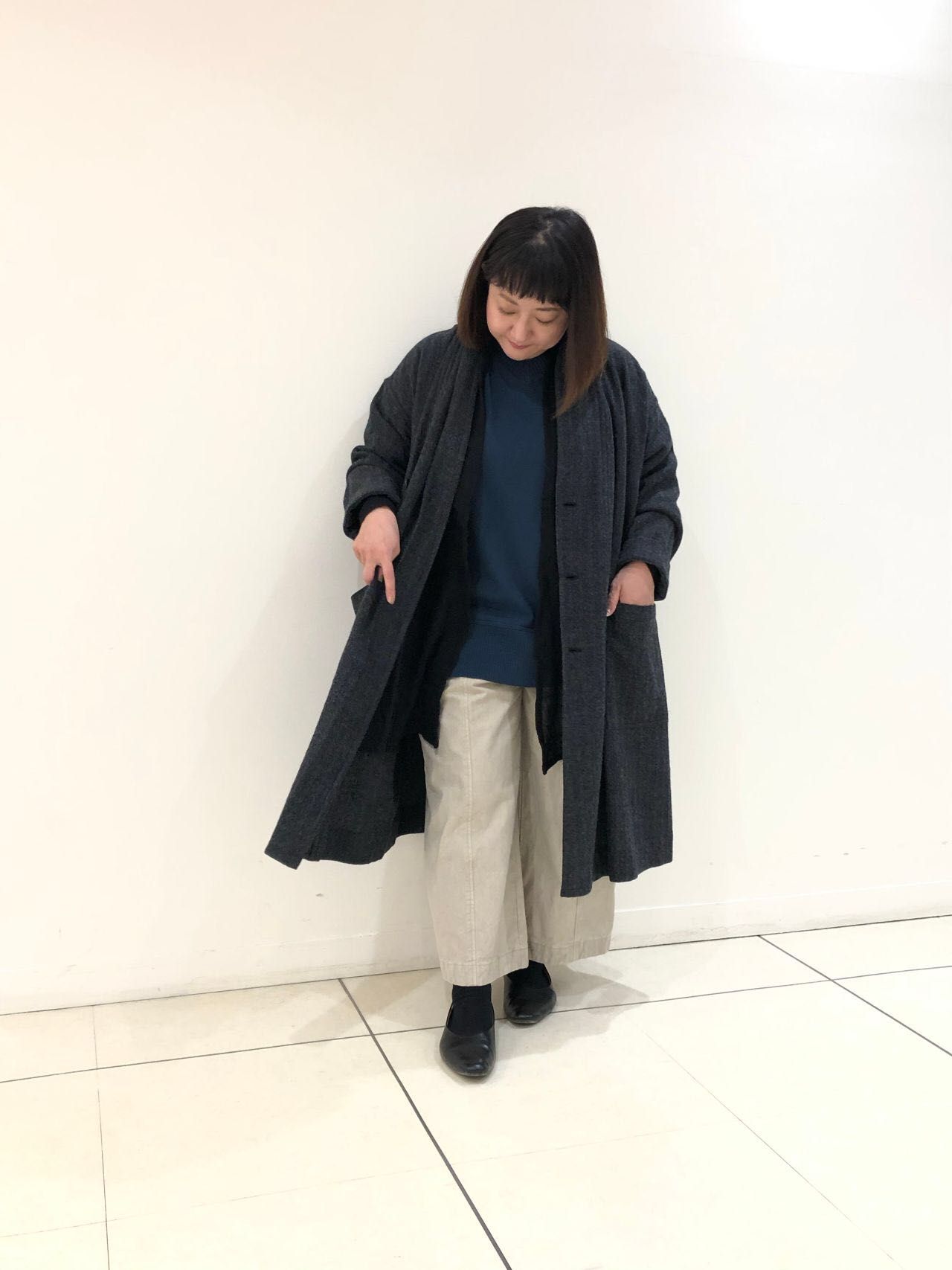 長すぎず短すぎず、サイズ感も程よくゆるっとしているので、ブラウスやワンピースなど、お持ちのものと合わせて着こなせます。