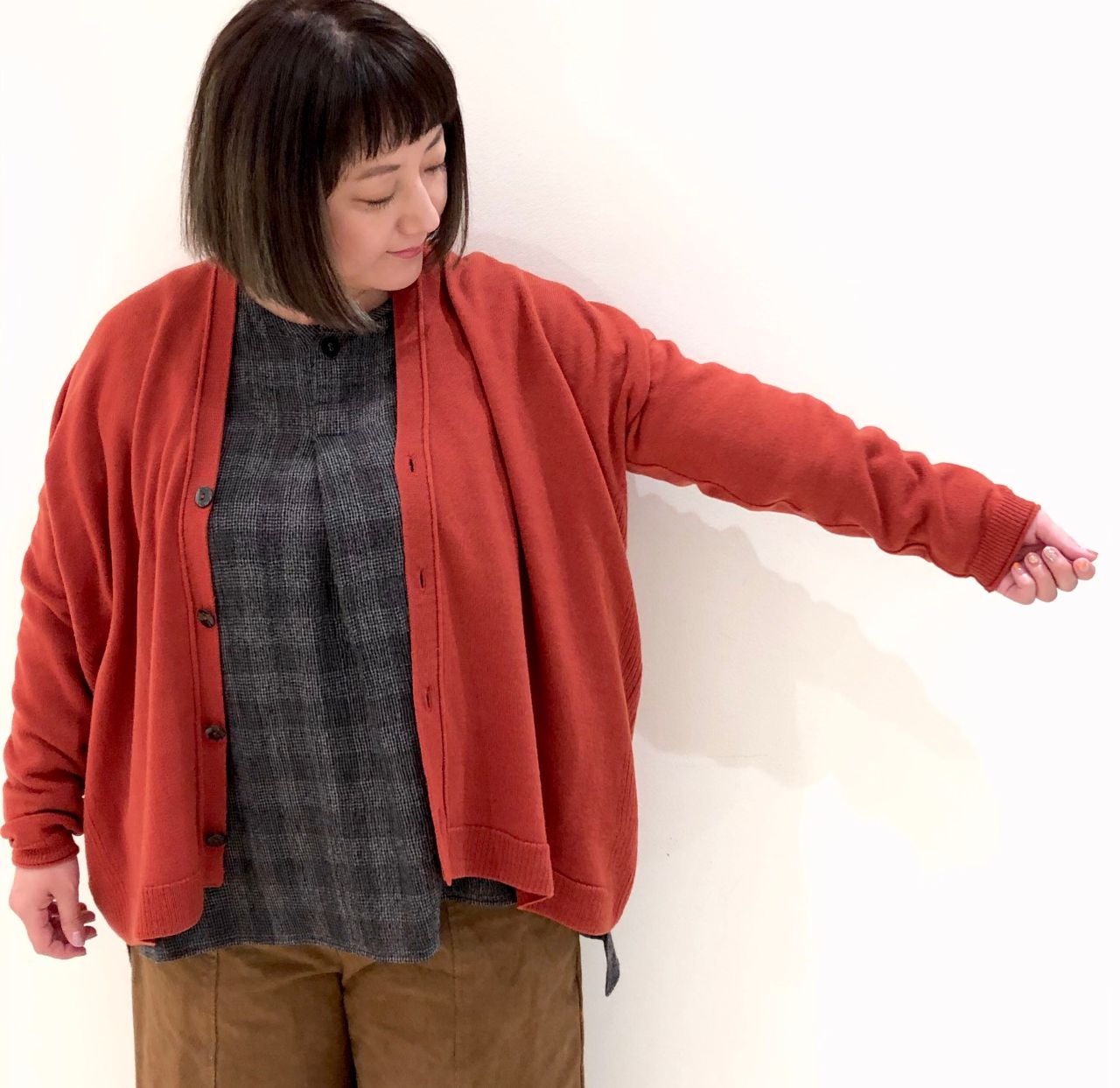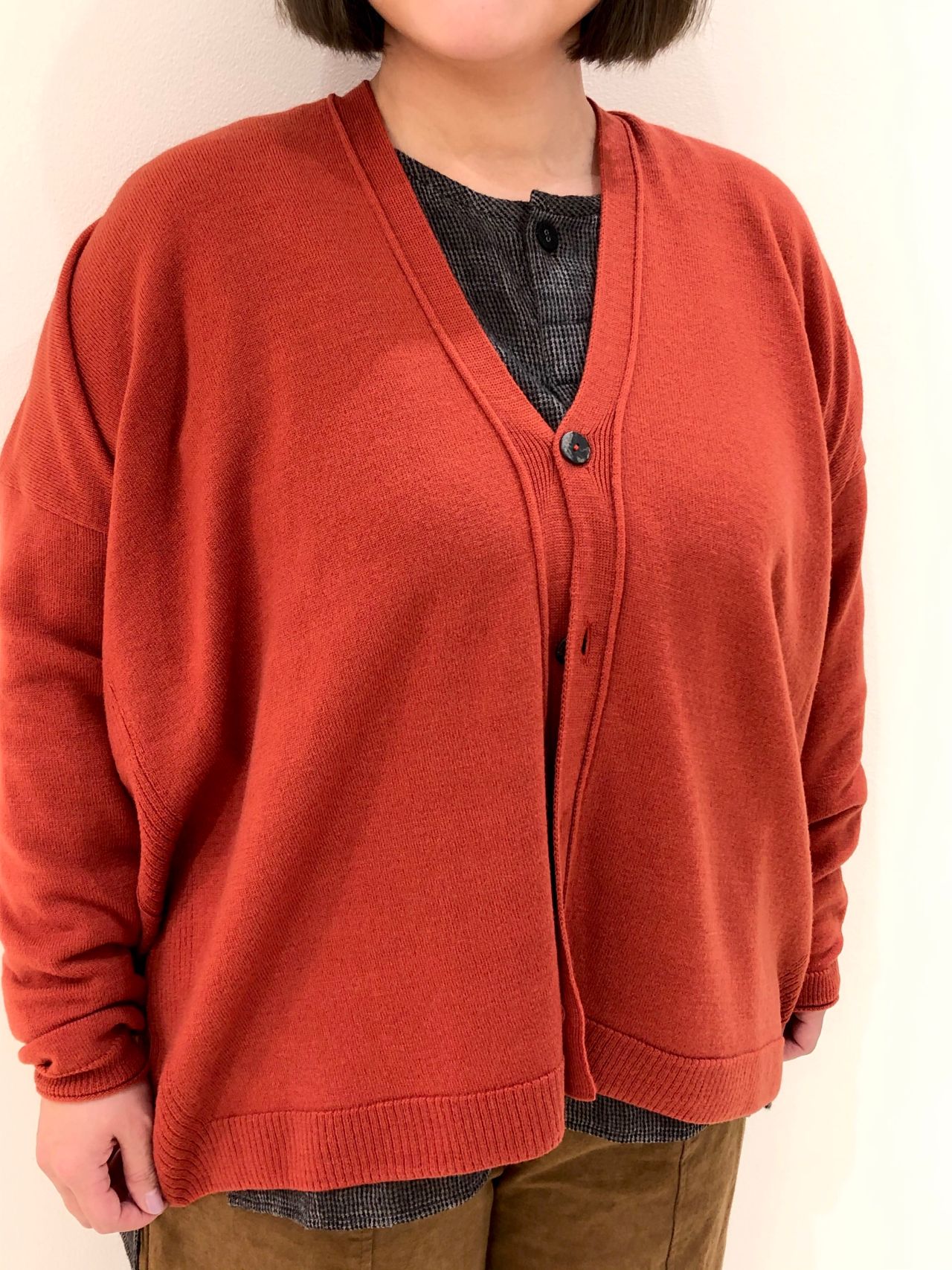 様々なアイテムと相性のいいカーディガン。