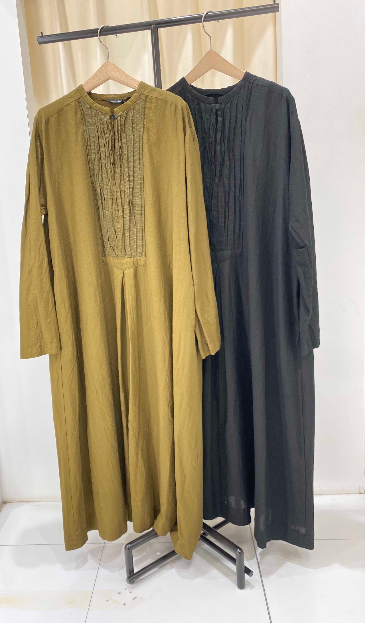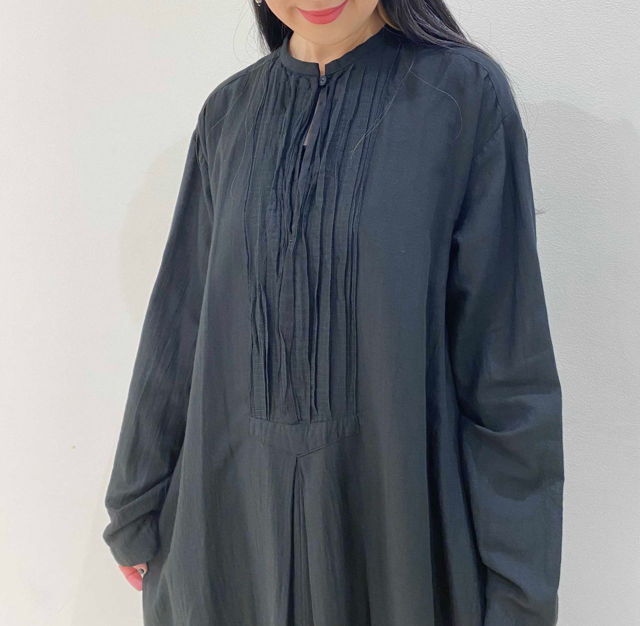 切り替え部分はインドの綿シルクのコタチェク生地を使い、素材感の違いとフワッとした軽さや柔らかさを出しました。