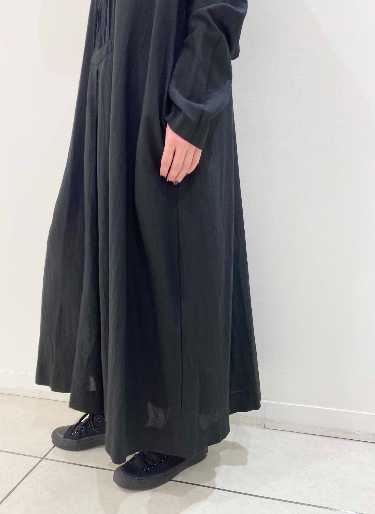 前胸元に異なる生地で切り替えを入れたデザインのワンピース。
